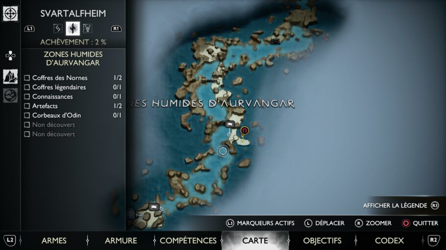 En ouvrant votre carte, vous allez voir la liste des objets / objectifs qui sont cachés dans chaque zone. Certains de ces objets / objectifs sont essentiels qui vous souhaitez améliorer Kratos.