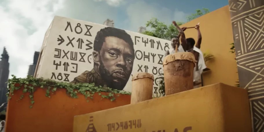 D’après le trailer, T’Challa a sa propre murale (à l’instar d’Iron Man dans Spider-Man Far From Home à la différence près que Robert Downey Jr. est toujours en vie contrairement à Chadwick Boseman).