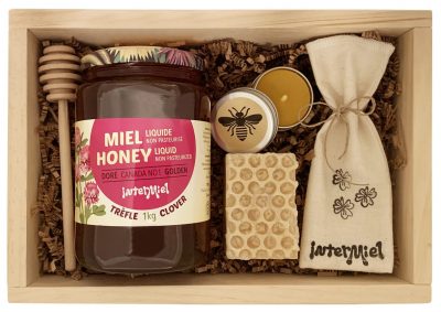 Intermiel produit un miel est de très haute qualité et certifié 100 % Québec grâce à un système de traçabilité qui permet de retracer avec précision d’où il est issu. Ils proposent un très grand éventail de produits tels que le Api Gin de miel, une variété de miels 100% québécois directement des ruches, produits gourmands, spiritueux à l’érable, produits de soin et bien plus!