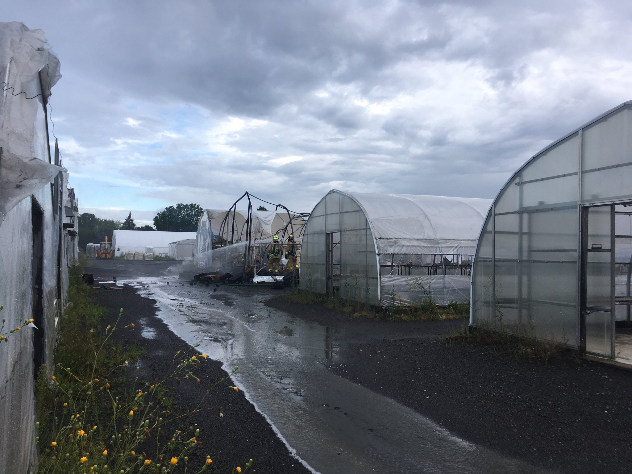 La première équipe de sapeurs a confirmé l’incendie éclaté à une serre d’environ une trentaine de mètres de long. Aucune évacuation n’a été nécessaire puisque personne ne se trouvait dans l’immeuble au moment de l’incendie. L’emplacement servait à ranger du matériel principalement composé de plastiques, de bois et de carton. L’incendie a été déclaré sous contrôle peu après 8h.