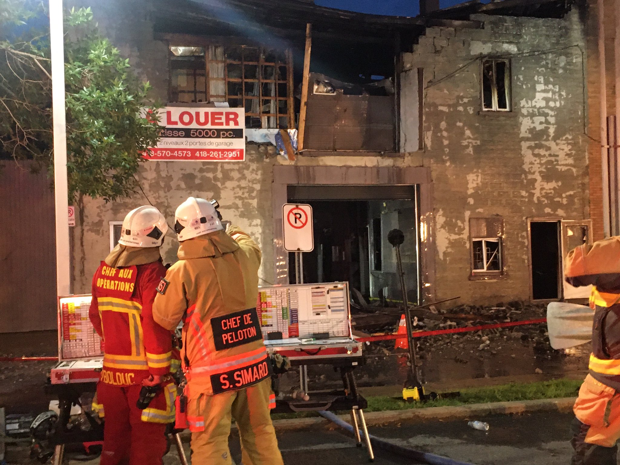 Les quelque 65 pompiers du Service de protection contre l’incendie de la Ville de Québec (SPCIQ) sont intervenus principalement pour limiter les dommages à un autre immeuble adjacent. Un patrouilleur du Service de police de la Ville de Québec (SPVQ) a informé les pompiers de l’effondrement d’un mur en façade au 2e étage et la présence d’un câble électrique au sol.