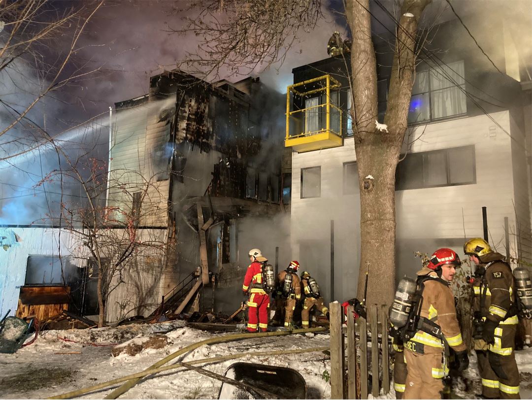 Deux immeubles de trois étages de la 4e Rue dans le secteur de Limoilou ont été lourdement endommagés par les flammes tôt mardi matin. L’enquête a été transférée au Service de police de la Ville de Québec puisque le Commissariat aux incendies a «de forts doutes qu’il y a eu intervention humaine» dans cette affaire.