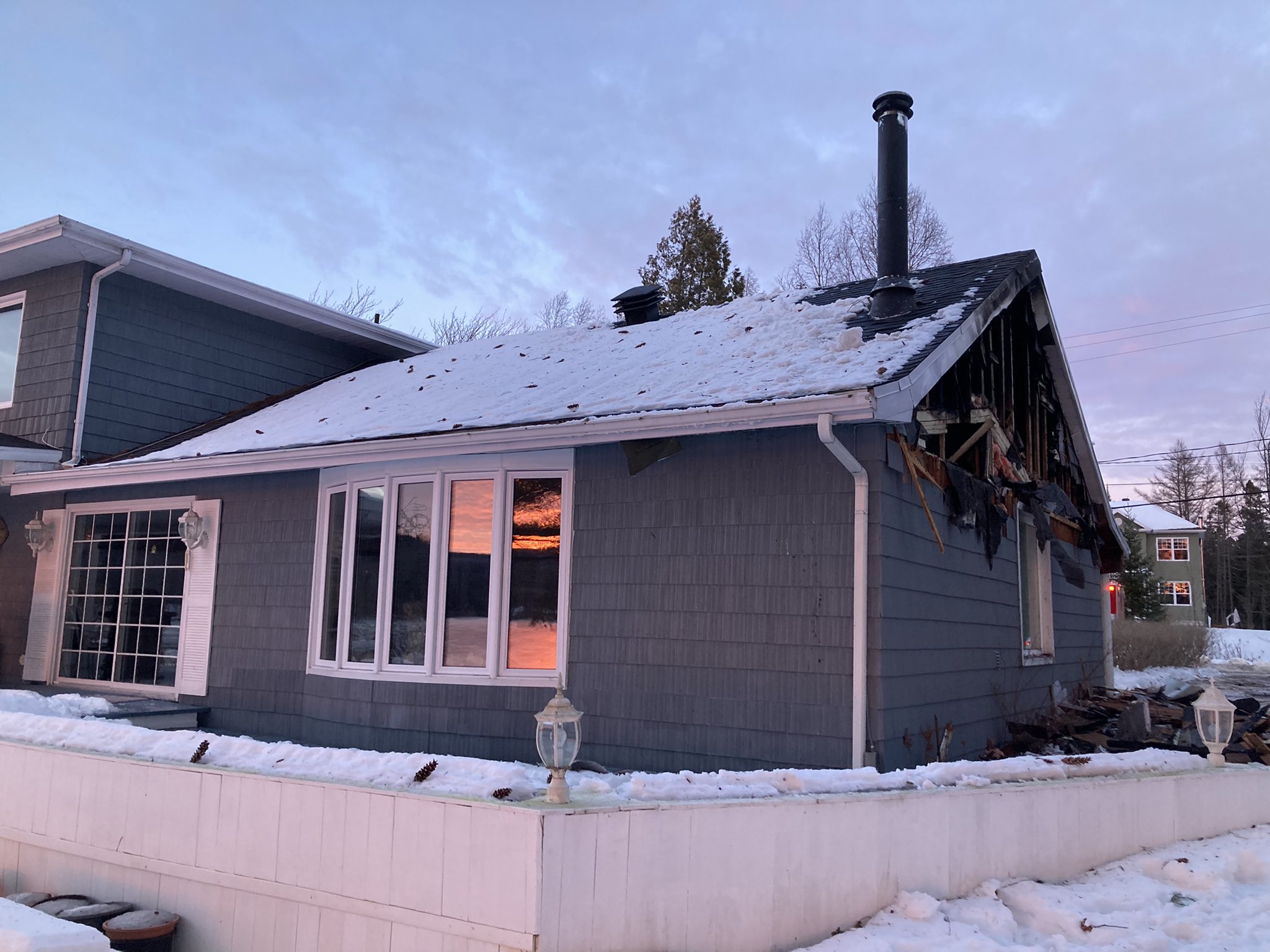 Un feu de cheminée avec propagation à la structure serait à l’origine de l’incendie.