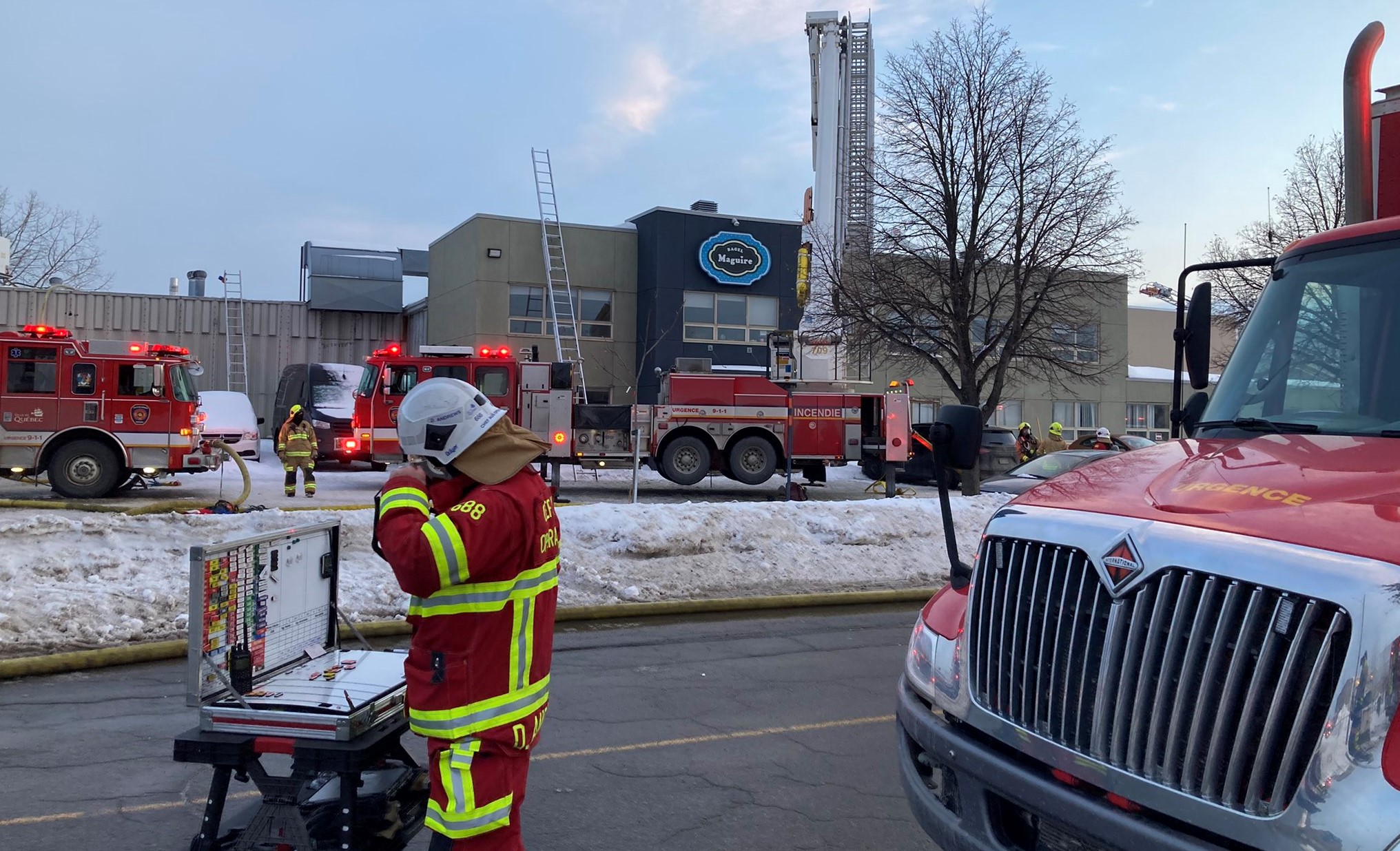 INTERVENTION. Les pompiers du Service de protection contre l’incendie de Québec (SPCIQ) ont convergé en nombre, mercredi, au 475 de la rue Desrochers, dans le district Vanier. Ils ont combattu un incendie majeur à l’usine de l’entreprise Bagel Maguire.