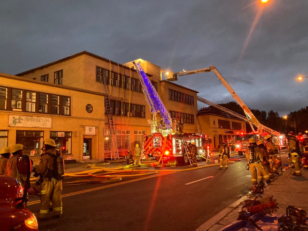 D’après les premières informations obtenues, plusieurs appels ont été reçus à la centrale 9-1-1 peu après 4h la nuit dernière. À l’arrivée des premières unités de sapeurs, l’immeuble mixte abritant commerces et logements ne présentait pas de signes apparents de sinistre. Par la suite, l’inspection des lieux a confirmé la présence de fumée à l’arrière du bâtiment. Rapidement, le début d’incendie a été localisé dans la cage d’escalier côté cour avec propagation jusqu’au toit plat.