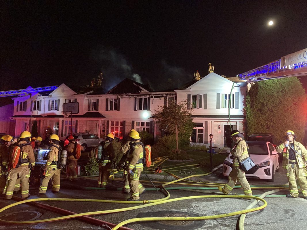 Les premiers appels de détresse ont été lancés vers 2h15 du matin, alors que des flammes étaient visibles dans la toiture d’un bâtiment regroupant cinq maisons familiales en rangée.
