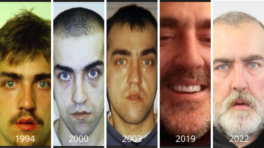 Dans ce contexte, la SQ a dévoilé vendredi une série de photographie d’identité judiciaire (communément appelée mugshot) du suspect, dont la plus vieille remonte à 1994.