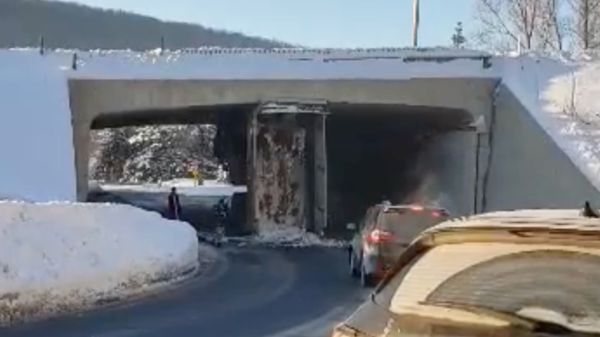 L’incident est survenu vers 8h00 sur la rue Durance. Alors qu’il venait de quitter l’autoroute Laurentienne en direction nord, le camion s’est engagé sous le viaduc de l’autoroute avec sa benne ouverte sans le savoir et s’est retrouvé coincé sous celui-ci. L’impact a aussi fait lever la cabine du chauffeur de plusieurs mètres. Heureusement, ce dernier n’a pas été blessé.
