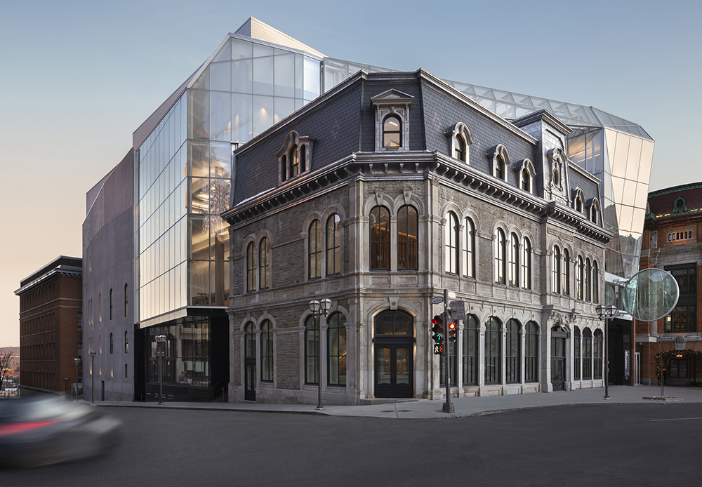 Conçu par Coarchitecture en collaboration avec L’Architecte Jacques Plante et réalisé par Pomerleau, Le Diamant relève un pari audacieux. Il parvient à faire cohabiter sur la rue Saint-Jean un espace public urbain, un patrimoine architectural sensible et une salle de spectacle singulière. Déjà lauréat du prix d’excellence de l’Ordre des architectes du Québec dans la catégorie «Bâtiments culturels», l’édifice est décrit comme un lieu de passage du temps entre l’ancien et le nouveau.