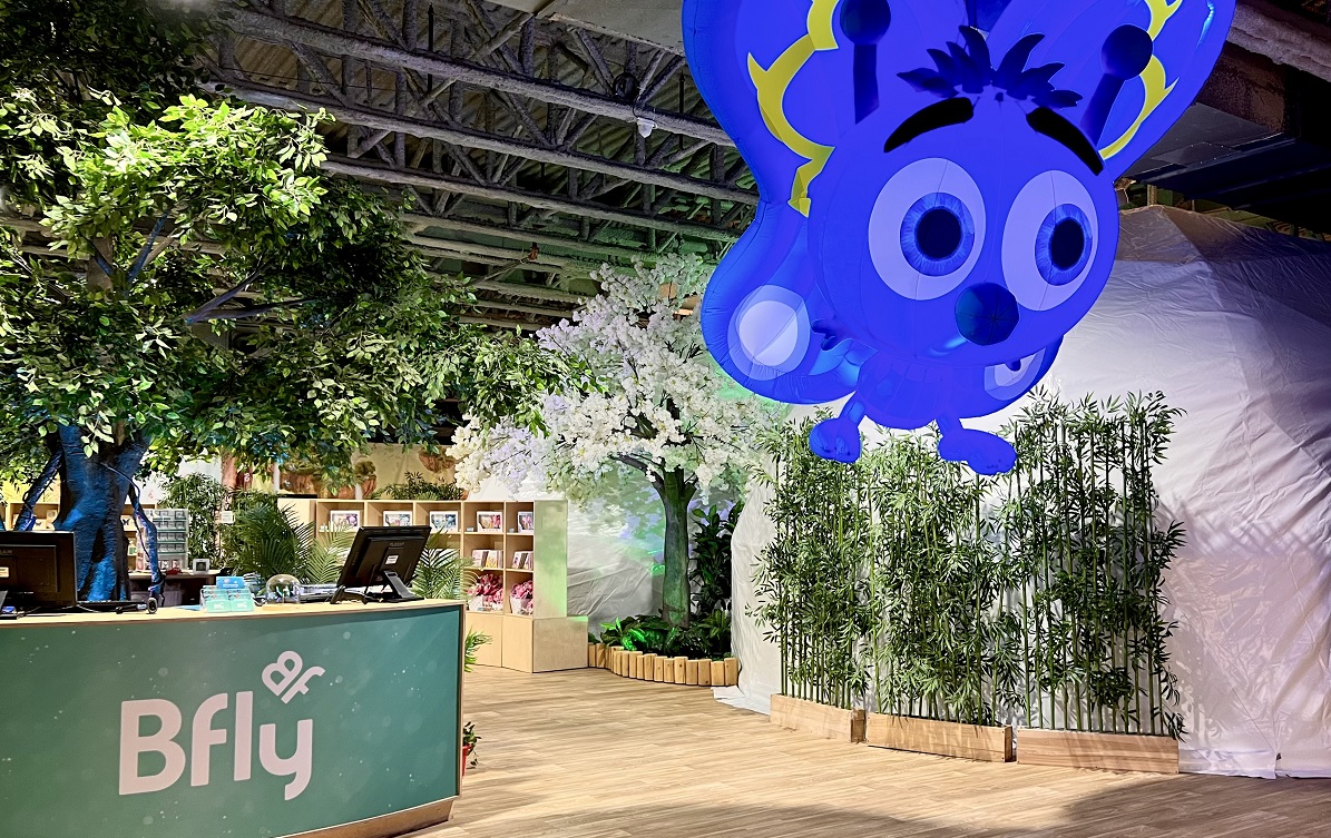 En sortant de la section volière, une boutique propose les produits dérivés de la marque ainsi que des jeux et des livres jeunesse des Éditions Bfly.