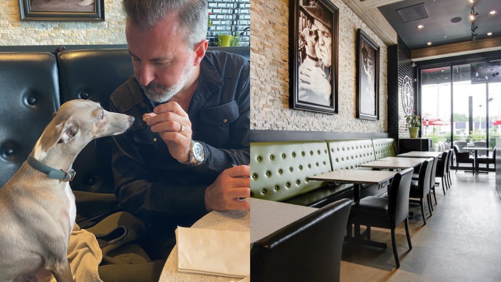 D’abord, les tables sont toutes munies d’un crochet pour permettre de facilement installer sa laisse. En plus, on leur sert leur propre bol d’eau et même des gâteries spéciales!