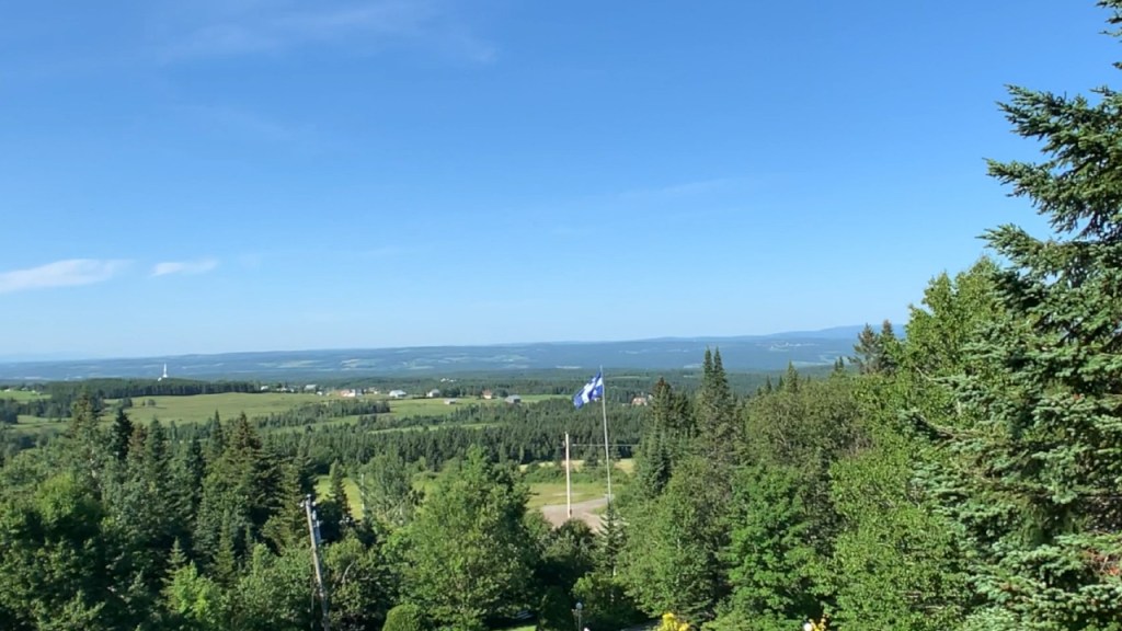 Vue d’en eau, on a la chance d’apercevoir la belle Rivière Chaudière et le village situé à environ 365m d’altitude dans les hauteurs appalachiennes.