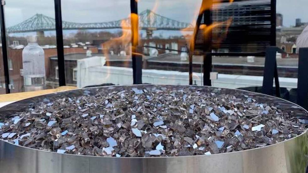 Qui l’eût cru? On peut installer un véritable foyer qui fait une belle flamme de façon sécuritaire au beau milieu d’une table en bois ou sur le plancher en bois