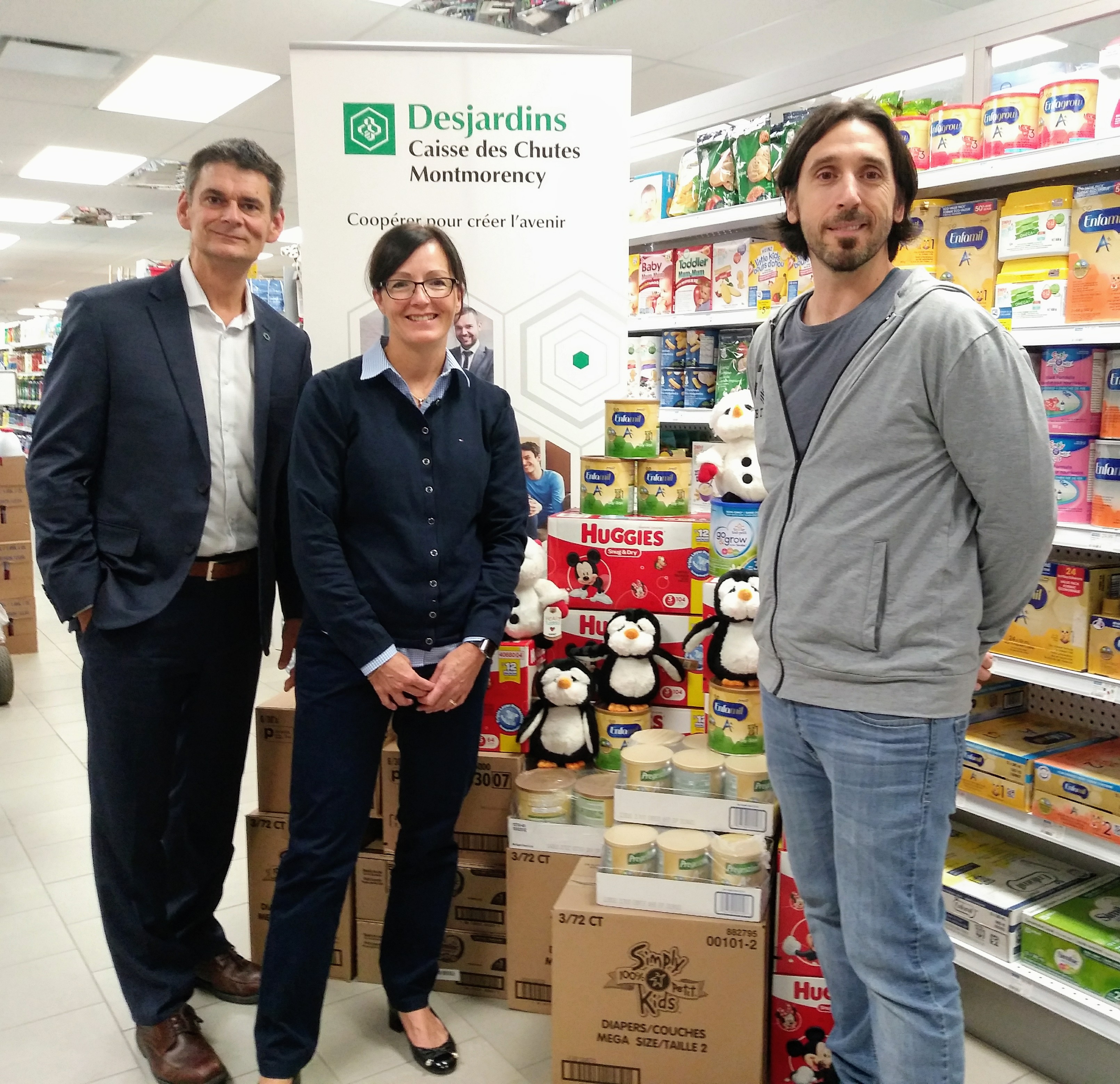 La première collecte RE-FA-VIE auprès des membres et employés de la Caisse Desjardins des Chutes Montmorency en collaboration avec la Pharmacie Brunet de Villeneuve a été fructueuse. L’objectif d’améliorer la qualité de vie de plusieurs mères a été atteint avec une récolte de denrées pour bébés, dont des couches, lingettes humides, etc. Une entente a aussi été créée avec le grossiste McMahon pour qu’il remette pour 2000$ de produits à l’organisme RE-FA-VIE .