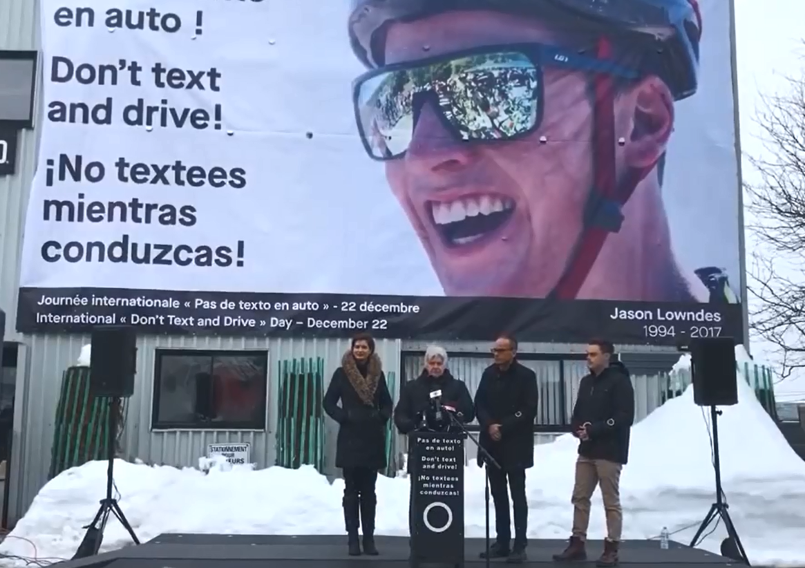 La démarche est initiée à la mémoire d’un ami coureur cycliste Jason Lowndes, victime d’un accident qui lui a coûté la vie en Australie l’an passé. Il avait 23 ans. La conductrice du véhicule qui l’a heurté textait au moment de l’impact.