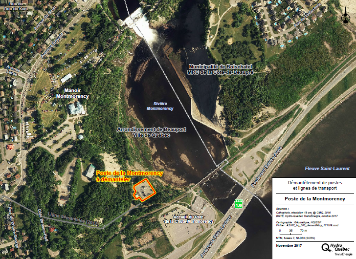 Sur le site Internet d’Hydro-Québec, on lisait en décembre que les travaux de démantèlement de l’ancien transformateur situé du côté ouest du parc de la Chute-Montmorency débutés en 2017 devaient prendre fin à l’été 2018. Vu l’état des travaux, ils tiraient plutôt à leur fin au début de l’hiver, permettant ainsi au site de retrouver son cachet naturel, visuellement plus attrayant aux yeux des visiteurs et des touristes.