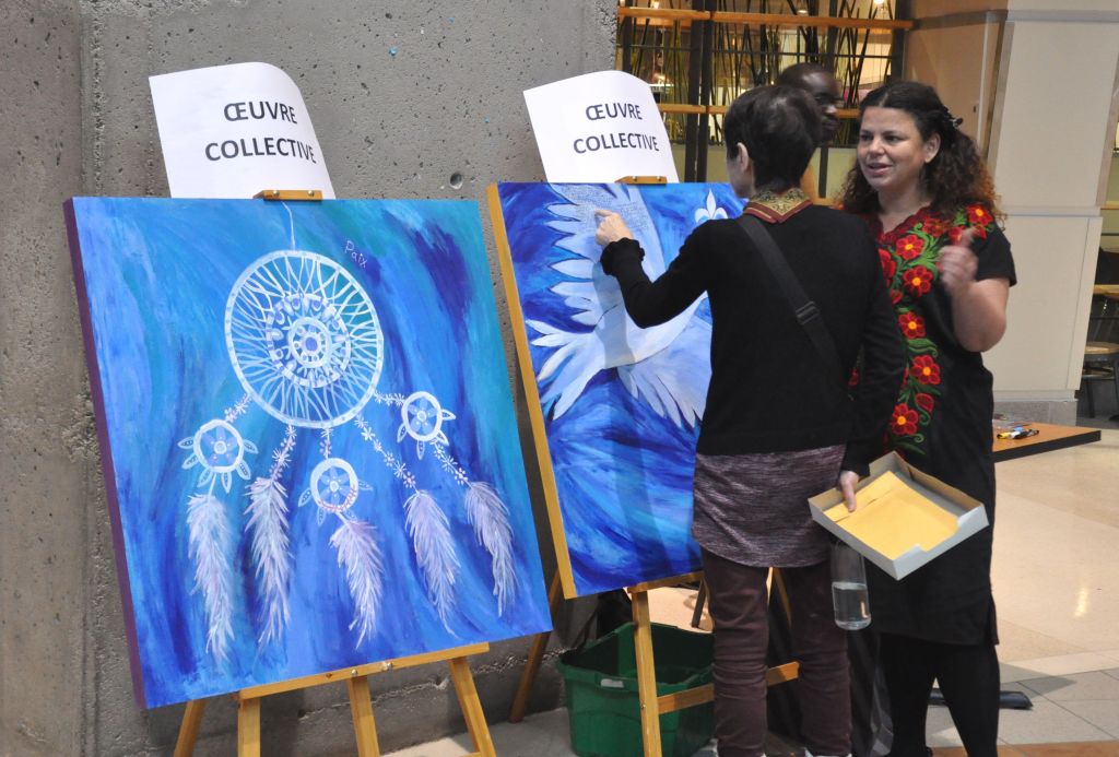 L’activité était complétée par la création de deux œuvres collectives. L’une pour exprimer ses réflexions sur les liens qui unissent toutes les composantes du tissu social de Québec et l’autre pour inscrire ses rêves d’un avenir meilleur.