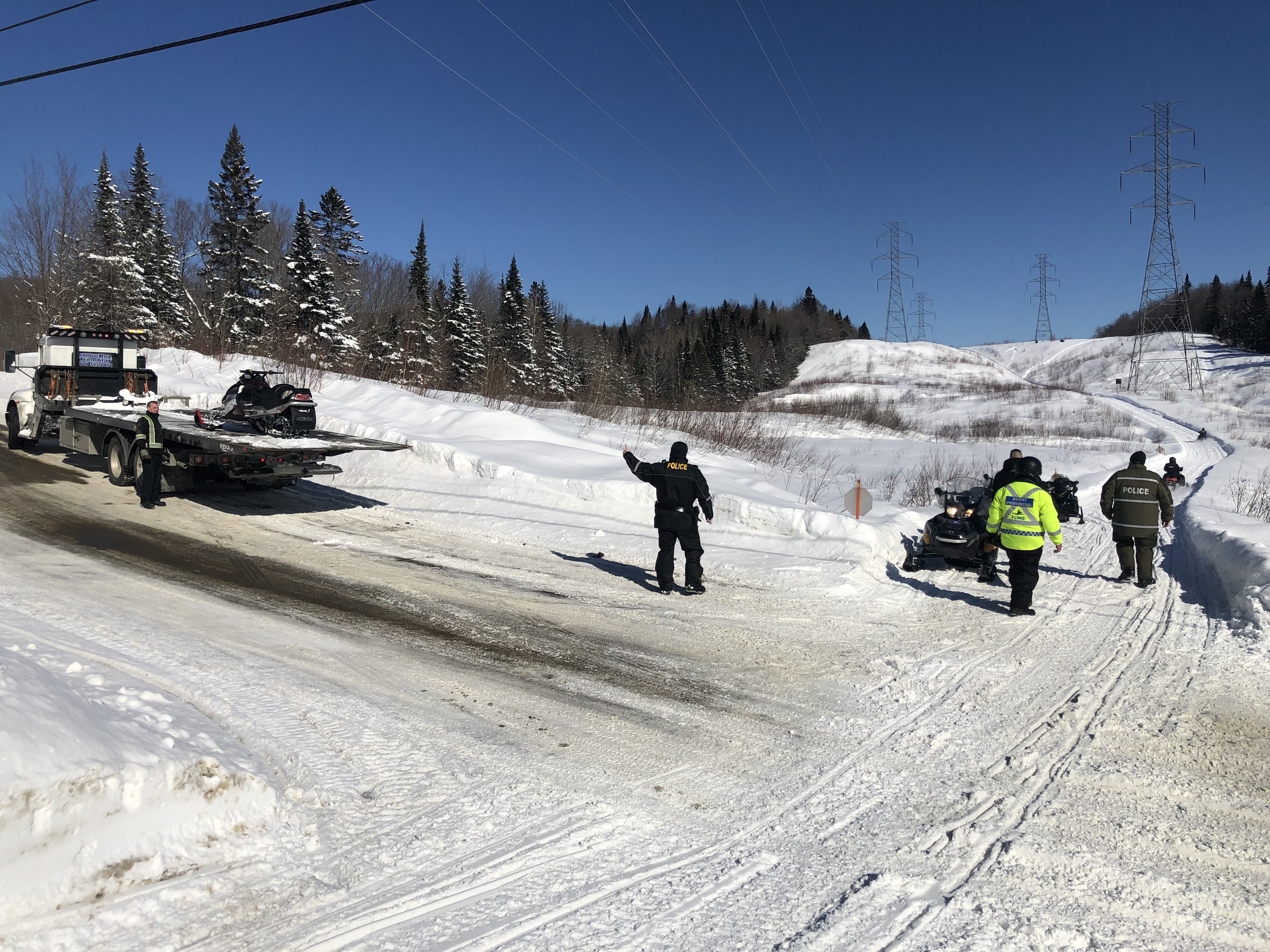 Les policiers-motoneigistes de la Sûreté du Québec du Centre de service de Sainte-Anne-de-Beaupré, avec la collaboration des patrouilleurs de la Fédération des clubs motoneigistes du Québec, ont effectué plusieurs opérations dans les sentiers de motoneiges de la Côte-de-Beaupré et Charlevoix du 15 au 17 février dernier. Des contrôles en soirée ont également été effectués afin de vérifier l’état des conducteurs et aucune conduite avec les capacités affaiblies n’a été détectée. Les patrouilleurs ont donné 24 constats d’infractions. Les principales infractions étaient reliées surtout aux équipements non conformes par exemple le système d’échappement non conforme, ainsi que le non-port de documents. Deux motoneiges ont été remisées : une puisque le conducteur circulait avec un permis sanctionné et la seconde a été retrouvée volée et abandonnée en sentier.