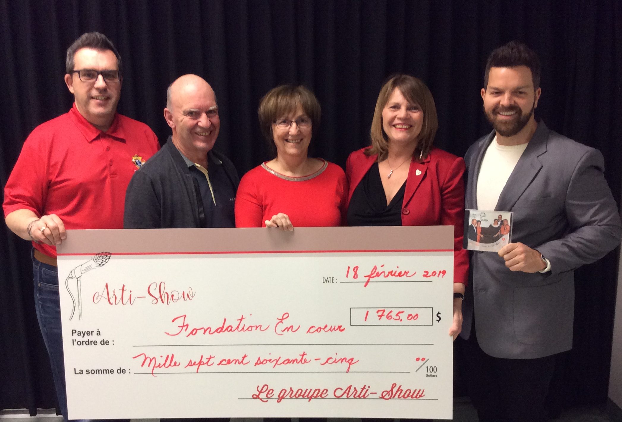 Le comité féminin a donné un montant de 1600$, le comité paroissial a versé 1500$ et le groupe musical Arti-Show a remis 1765$. Le comité féminin (photo) était composé d’Aline Drouin-Barbeau, Denise Therrien (présidente), Louise Villeneuve et Philippe Deslauriers (de la fondation En cœur). Les représentants d’Arti-Show étaient Gervais Barbeau, Bertrand Paquet, Denise Therrien, Louise Villeneuve et Philippe Deslauriers. Plusieurs membres du comité pastoral étaient présents lors de la remise du chèque à la fondation.