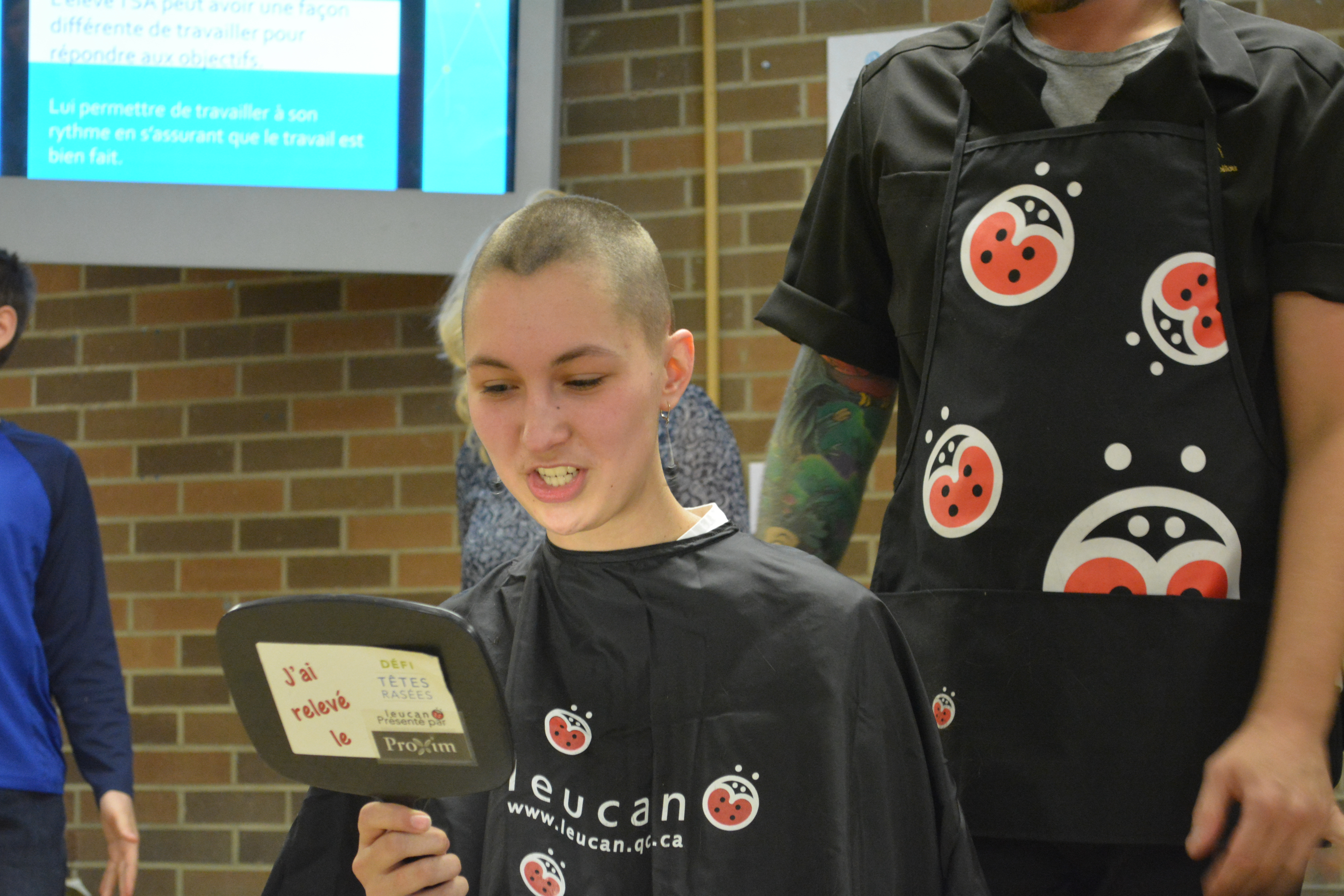 Larmes, sourires, soupirs, craintes, courage. La dizaine d’élèves de la première à la cinquième secondaire ont vu leurs crânes dégarnis ou leurs couettes coupées, par les coiffeurs de l’organisme Leucan, sont passés par toute une gamme d’émotions.