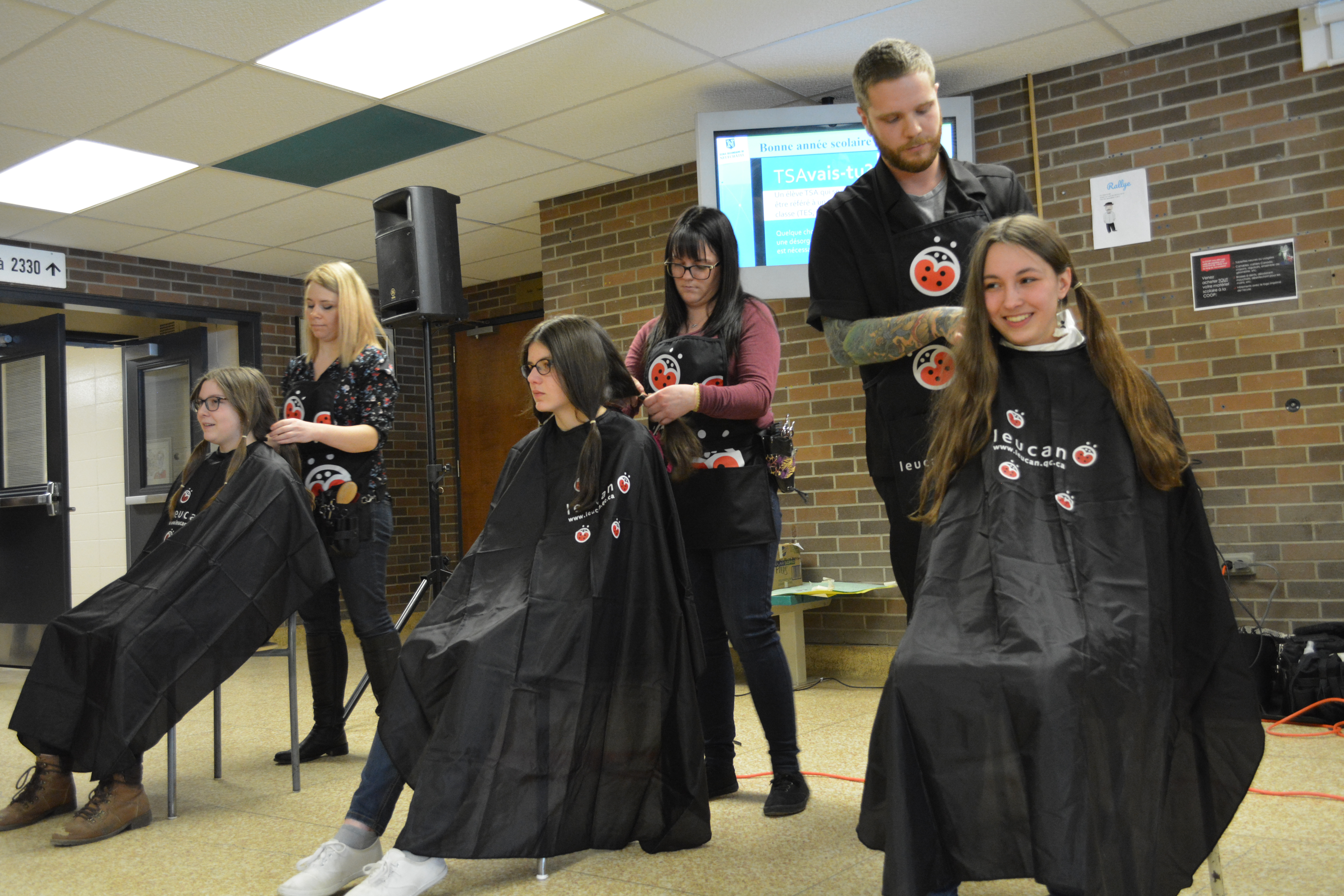 Larmes, sourires, soupirs, craintes, courage. La dizaine d’élèves de la première à la cinquième secondaire ont vu leurs crânes dégarnis ou leurs couettes coupées, par les coiffeurs de l’organisme Leucan, sont passés par toute une gamme d’émotions.