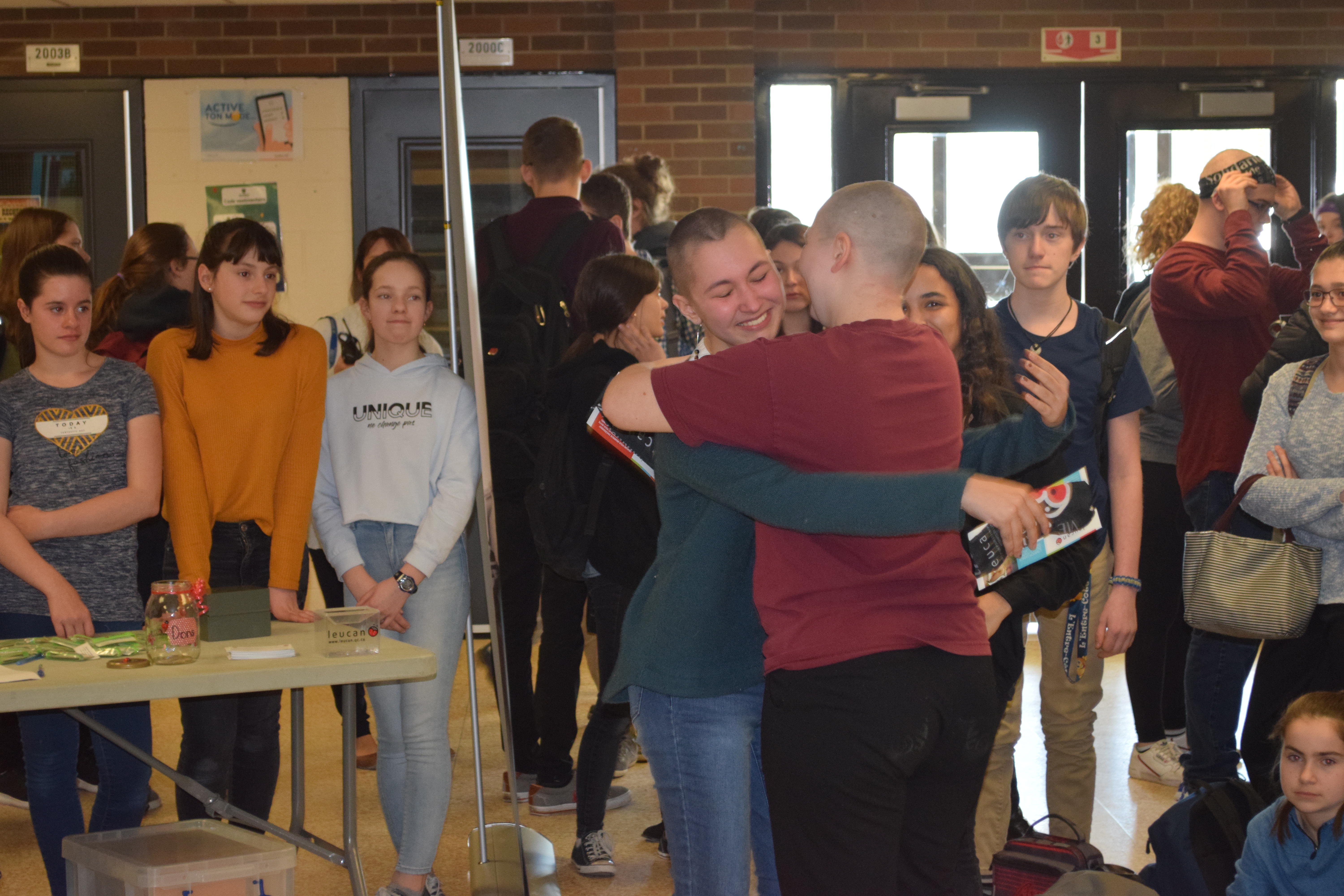 ÉVÉNEMENT. C’est dans un hall d’entrée comble d’étudiants et d’enseignants que l’École secondaire Neufchâtel a révélé avoir amassé 3952$ pour le Défi têtes rasées de Leucan et le Défi coupe ta couette qui se déroulaient ce midi. L’établissement scolaire a donc largement dépassé l’objectif de 2000$.