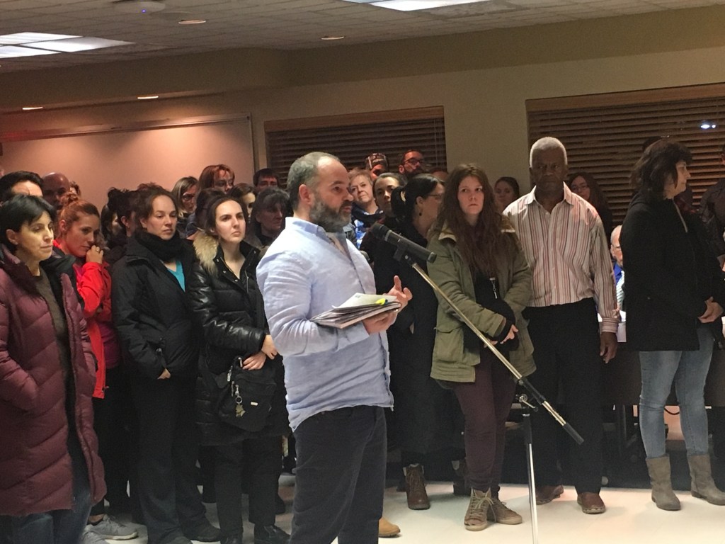 Plusieurs enseignants ont ensuite défilé au micro afin de faire comprendre les conséquences des nouvelles mesures de la CSDPS aux commissaires. C’est le cas de Claudia Dubé, enseignante de 16 années d’expérience à l’École du Trivent. «J’ai eu une grosse commotion cérébrale lors d’un accident de travail et ce n’est pas possible pour moi d’enseigner cinq jours consécutifs. Volontairement, je me prive de 16 000$ de salaire afin de prendre congé, car j’en ai besoin pour pouvoir faire l’année au complet. Avec les nouvelles mesures, j’ai peur de ne pas être capable de faire mon travail l’an prochain.»