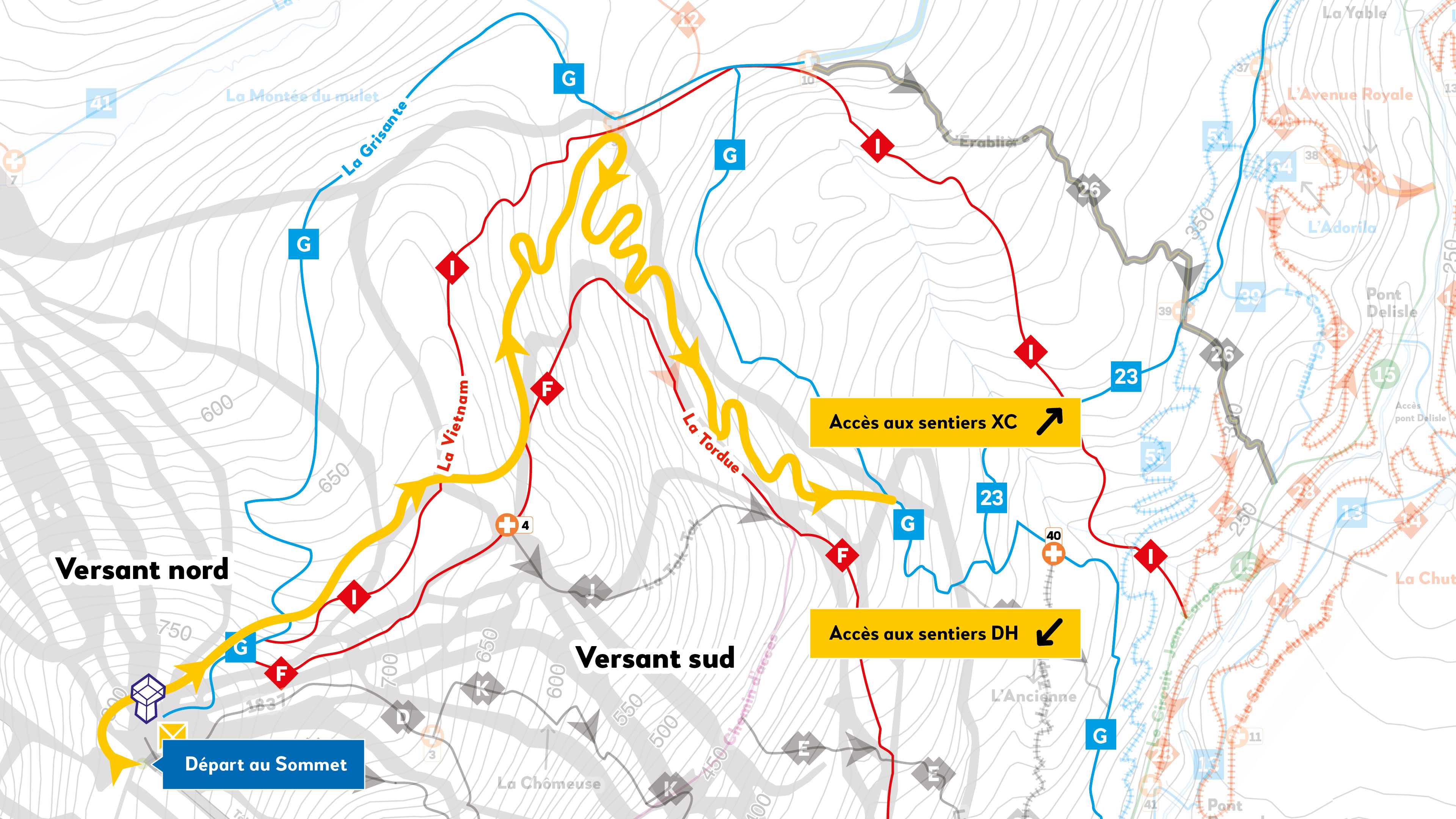 Le nouveau sentier de 4,5 km rejoindra facilement les deux secteurs de la montagne et fera ainsi le pont entre les volets cross-country et descente, déjà disponibles sur le réseau. La construction sera faite par Vélosolutions, une firme experte dans le domaine, basée sur la Côte-de-Beaupré.