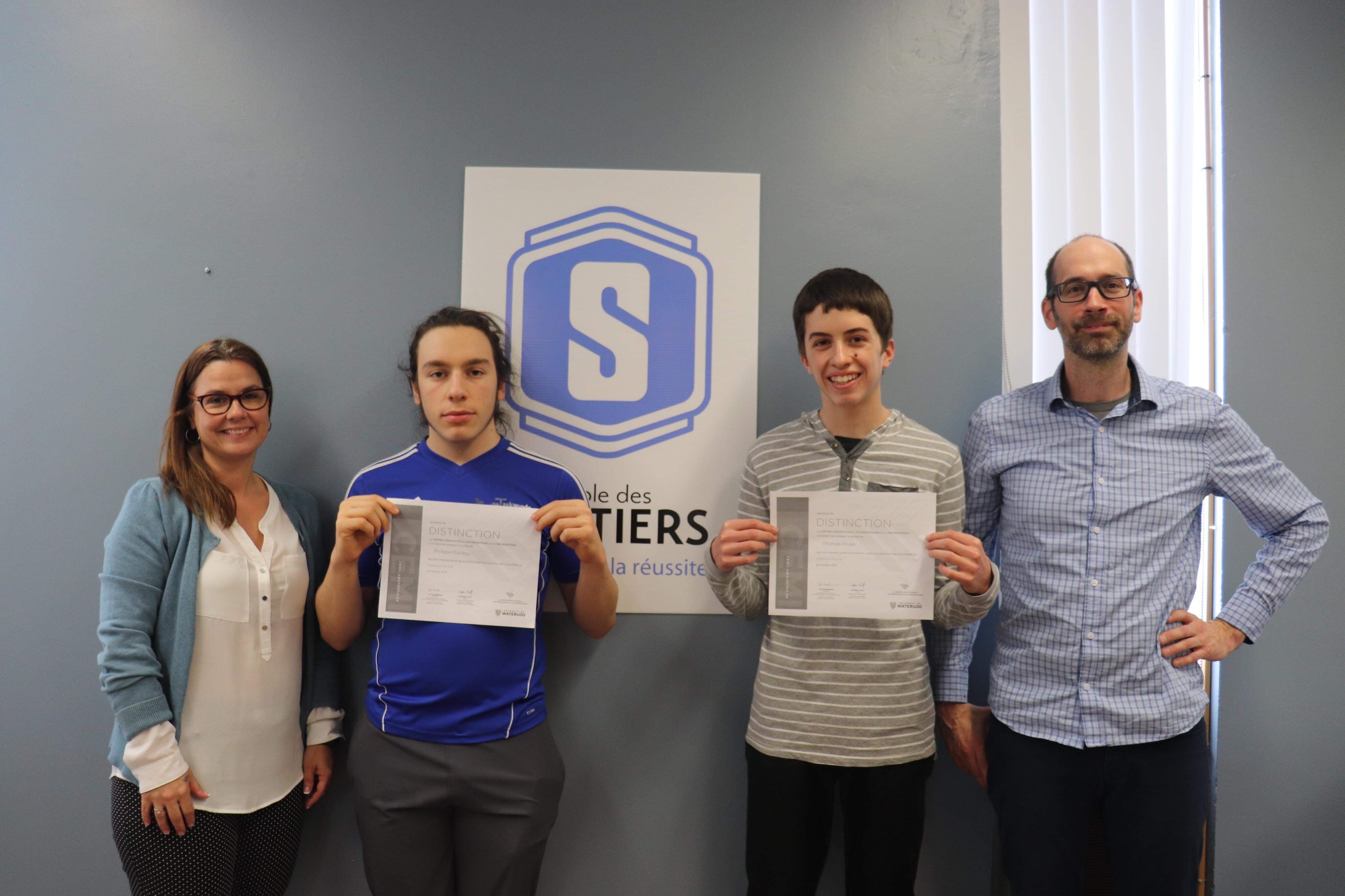 CALCUL. Deux élèves de l’École secondaire des Sentiers à Charlesbourg se sont classés au premier rang dans la région de la Capitale-Nationale au concours de mathématique et d’informatique de l’Université de Waterloo.