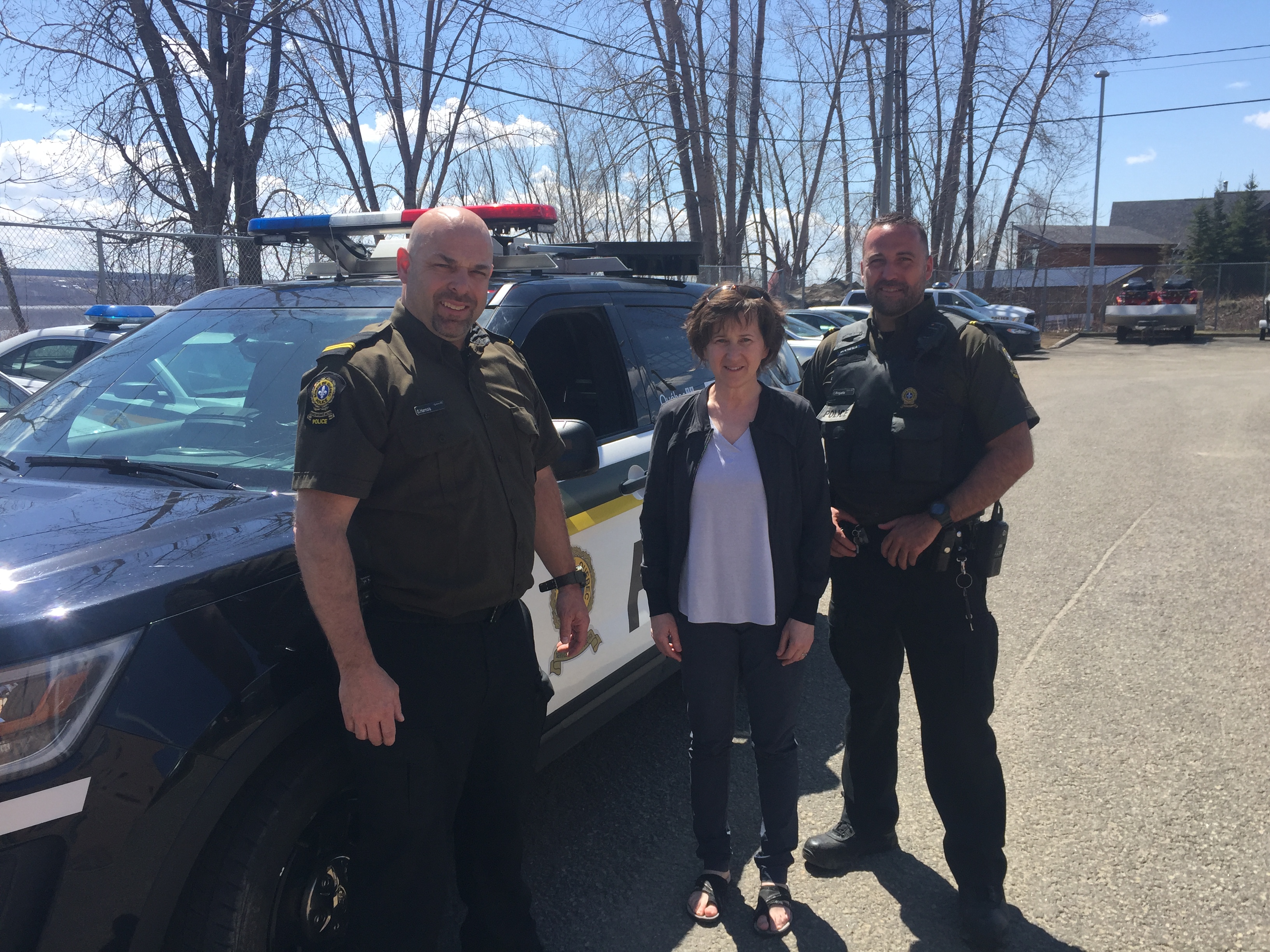 Le 4 mai dernier, la Sûreté du Québec a assuré la sécurité des piétons lors de la Marche des amis de Compostelle, à l’Île-aux-Coudres. Près de 1000 marcheurs étaient présents. Parise Cormier, mairesse de Saint-Ferréol-les-Neiges et présidente du Comité de sécurité publique de la MRC de la Côte-de-Beaupré, a visité le poste de la MRC de Côte-de-Beaupré et patrouillé avec le parrain de sa municipalité, le sergent Christian Ringuette. Lors de cette journée, Mme Cormier a assisté au changement de quart de travail et patrouillé dans le secteur de Saint-Ferréol-les-Neiges. Elle a participé à deux opérations en sécurité routière dont une sur la route 138, et la seconde dans une zone municipale de 50 km/h. Sur la photo: le lieutenant Ghislain Harnois, Parise Cormier ainsi que le sergent Christian Ringuette.