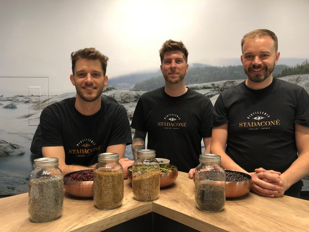 Les trois spiritueux offerts par la distillerie sont aussi offerts à la SAQ. Le Stadaconé Bleu, le Stadaconé Rouge et le Stadaconé Noir forment un trio de gins, du plus accessible au finement relevé.