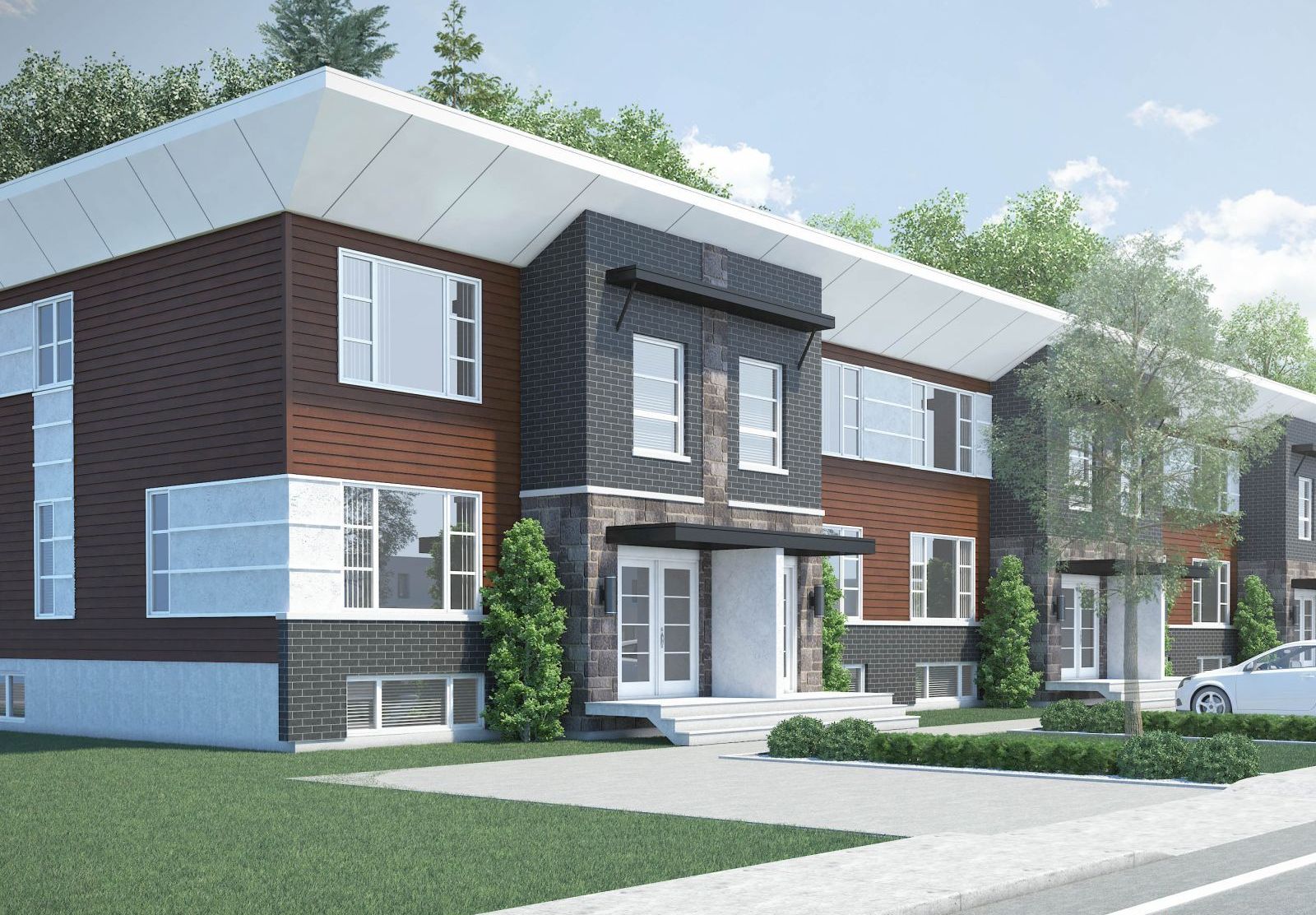 Prévu pour prise de possession cet été, le complexe des Façades de l’Aéroport propose des habitations sur trois niveaux au prix unitaire de 255 000$. Offert en formule clé en main, il prévoit notamment pelouse et terrassement, entrées doubles asphaltées, trois chambres, cuisine avec îlot central, patio 10X16 pieds, ainsi que revêtement extérieur de pierre, brique et fibrociment et toit plat avec une membrane élastomère.