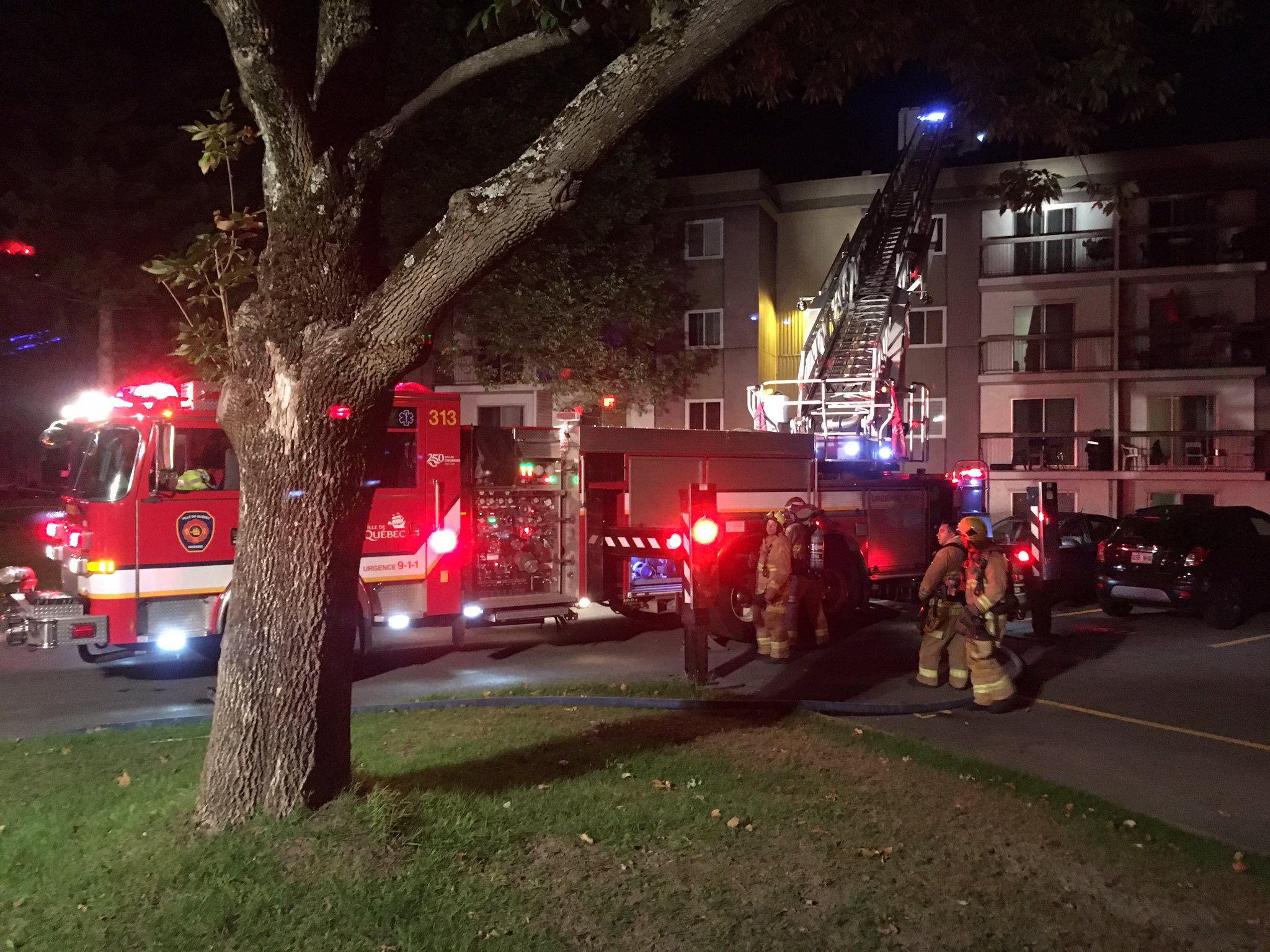 Le Service de protection contre l’incendie de Québec (SPCIQ) est intervenu dans le secteur Les Rivières hier soir. Un incendie, d’un immeuble résidentiel de quatre étages et de 50 logements au 2335 rue des Meuniers, a nécessité une seconde alarme. L’occupant du logement n’était pas sur les lieux au moment du sinistre et aucun son d’avertisseur de fumée n’a retenti dans le logement incendié. Les pompiers ont effectué une attaque rapide du feu au moyen d’un jet d’eau. Environ 80 personnes ont été évacuées alors qu’une dizaine de personnes ont été prises en charge par la Croix-Rouge. Aucune personne n’a été blessée pendant l’intervention alors que 35 pompiers ont travaillé pour maîtriser l’incendie. Le logement, qui a été la proie des flammes, a subi des dommages importants alors que des logements voisins ont subi également des dommages causés par la fumée et la chaleur.