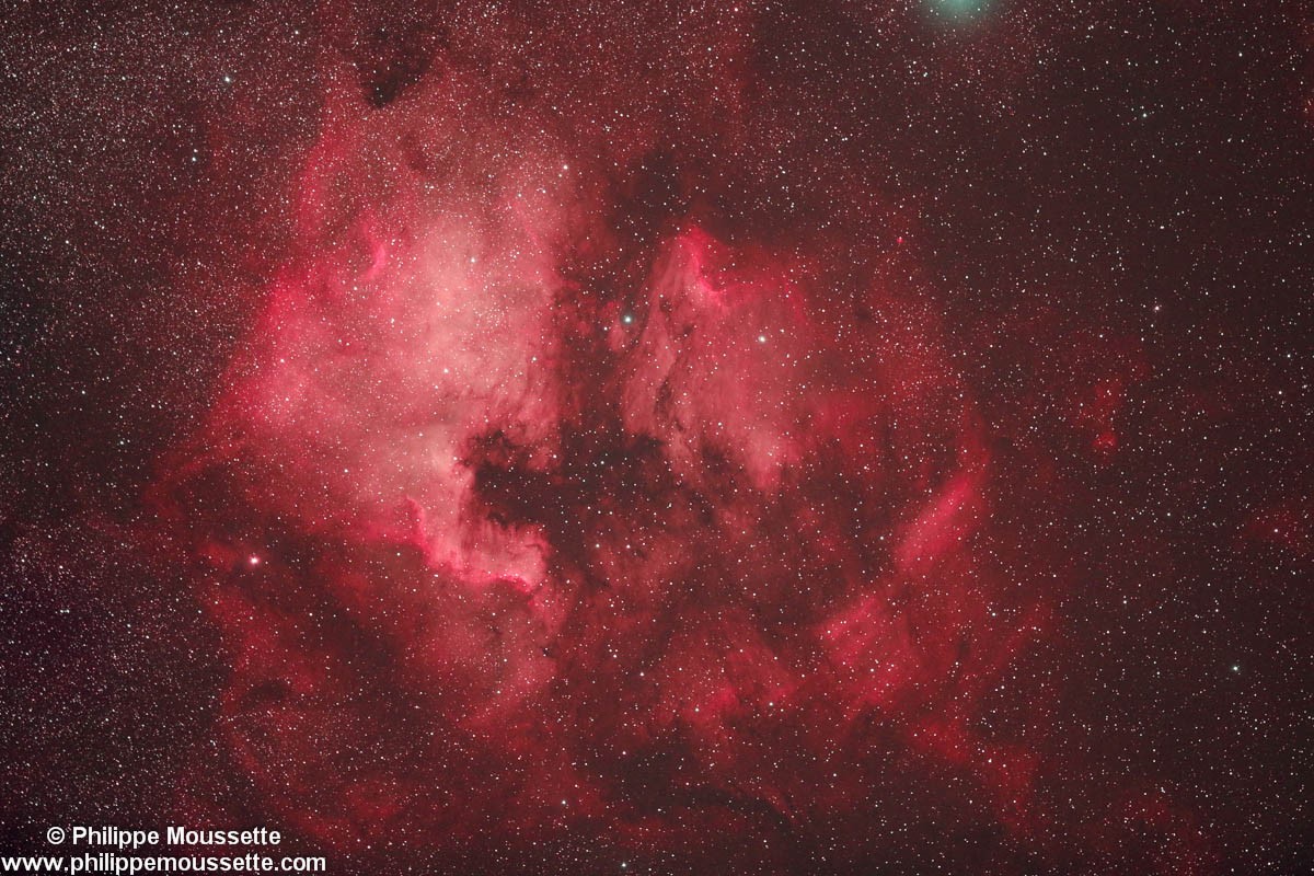 Cette formation cosmique (aussi connue sous les appellations NGC 7000 ou nebula North America) est une nébuleuse en émission située à environ 1890 années lumière de la Terre, dans la constellation du Cygne, près d’Alpha Cygni. Sa formation fait penser à la forme de l’Amérique du Nord, d’où son nom.