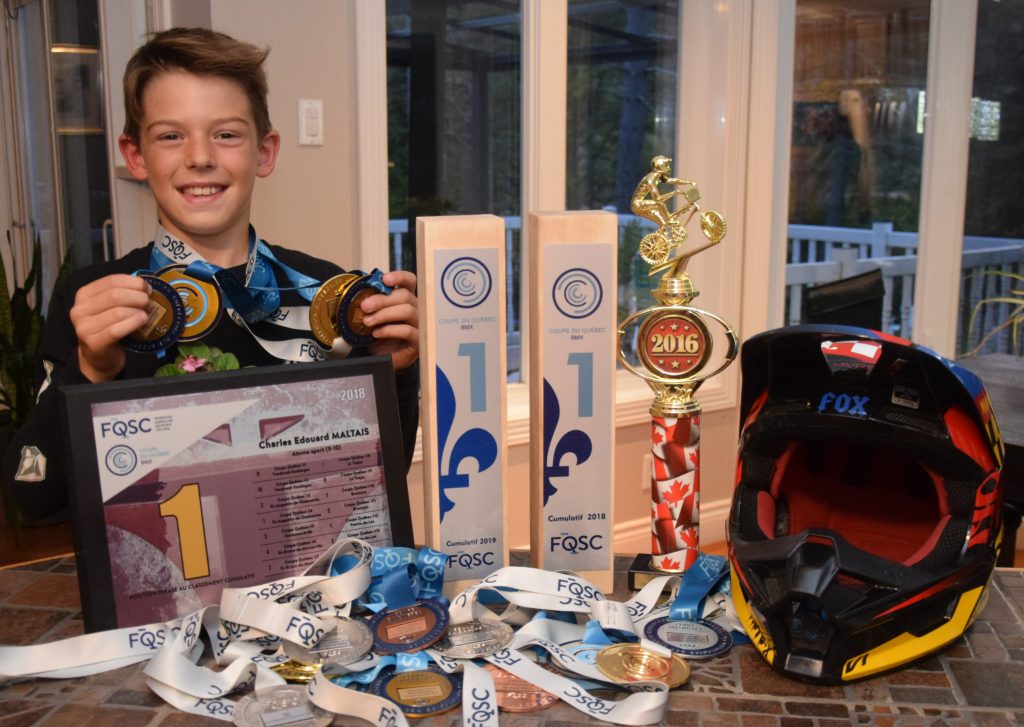 COMPÉTITIONS. Charles-Édouard Maltais, âgé de 10 ans, s’est classé au 1er rang, au pointage cumulatif cette saison, chez les Atomes Experts dans la catégorie où se retrouvent les meilleurs pilotes de la province. L’an dernier, à l’âge de 9 ans, il a remporté le trophée du 1er rang chez les Atomes Sports toujours au cumulatif des points. Ses objectifs: briller aux mondiaux à Houston au Texas en mai 2020 et participer, un jour, aux Jeux olympiques d’été où le BMX est accepté depuis 2012.