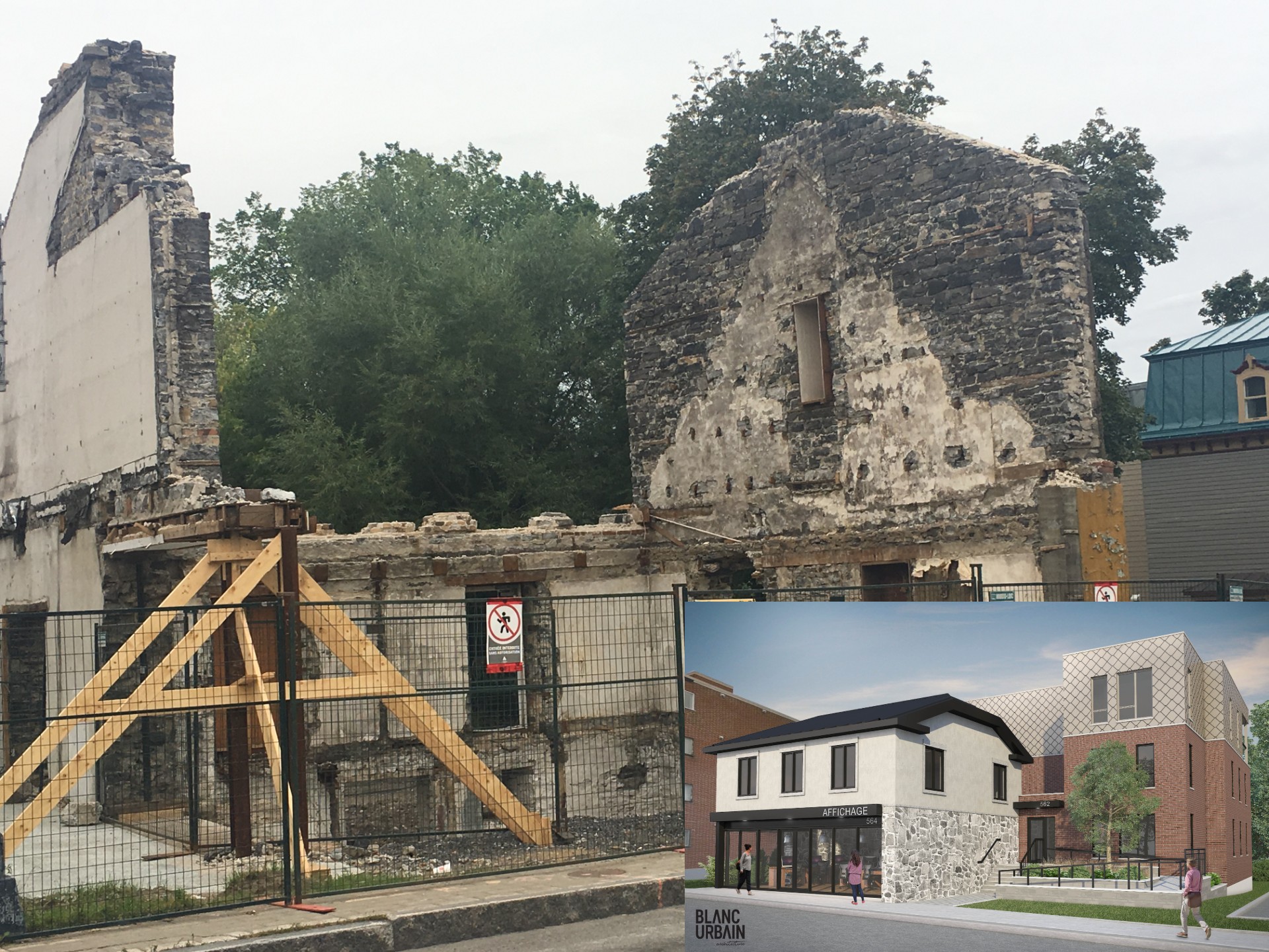 Acheté en octobre 2017 à la Ville de Québec, le bâtiment était dans un très mauvais état au moment de son acquisition. «Il a fallu décontaminer l’amiante à l’intérieur et il ne restait pas grand-chose qui pouvait être utilisé de l’édifice. Il y avait même une famille de ratons laveurs qui vivait dans le toit. Après de nombreuses discussions avec la Commission d’urbanisme et de conservation de Québec (CUCQ), il a été convenu que nous pouvions procéder à la démolition, mais nous devions garder les murs de pierres pour conserver l’aspect patrimonial. Le reste sera refait à neuf.»