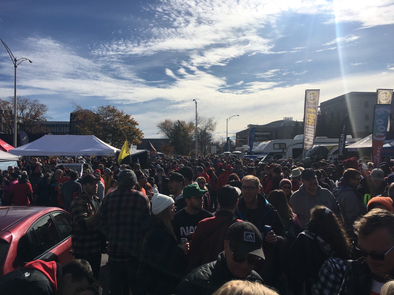 Football. L’organisation de l’Université Laval a déjà annoncé que la partie face aux Carabins serait disputée à guichets fermés et il y avait une foule monstre pour le fameux tailgate du Rouge et Or. Peu importe l’allégeance des partisans, les sourires étaient sur toutes les lèvres avec une superbe température extérieure. Si la partie ressemble au tailgate, les partisans auront droit à un spectacle de football exceptionnel.
