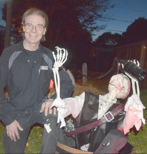 Claude Bouchard raconte qu’il a cette passion de l’Halloween depuis six ans. «C’était la première fois l’an dernier que j’avais un thème et il était question des pirates. J’ai fait un alligator qui arrivait en marchant avec la tête et la bouche qui bougeaient. Pendant les trois premières années, j’ai acheté des petites pièces d’Halloween. À un moment donné, j’ai commencé à les modifier et le goût m’est venu d’en fabriquer de A à Z.»