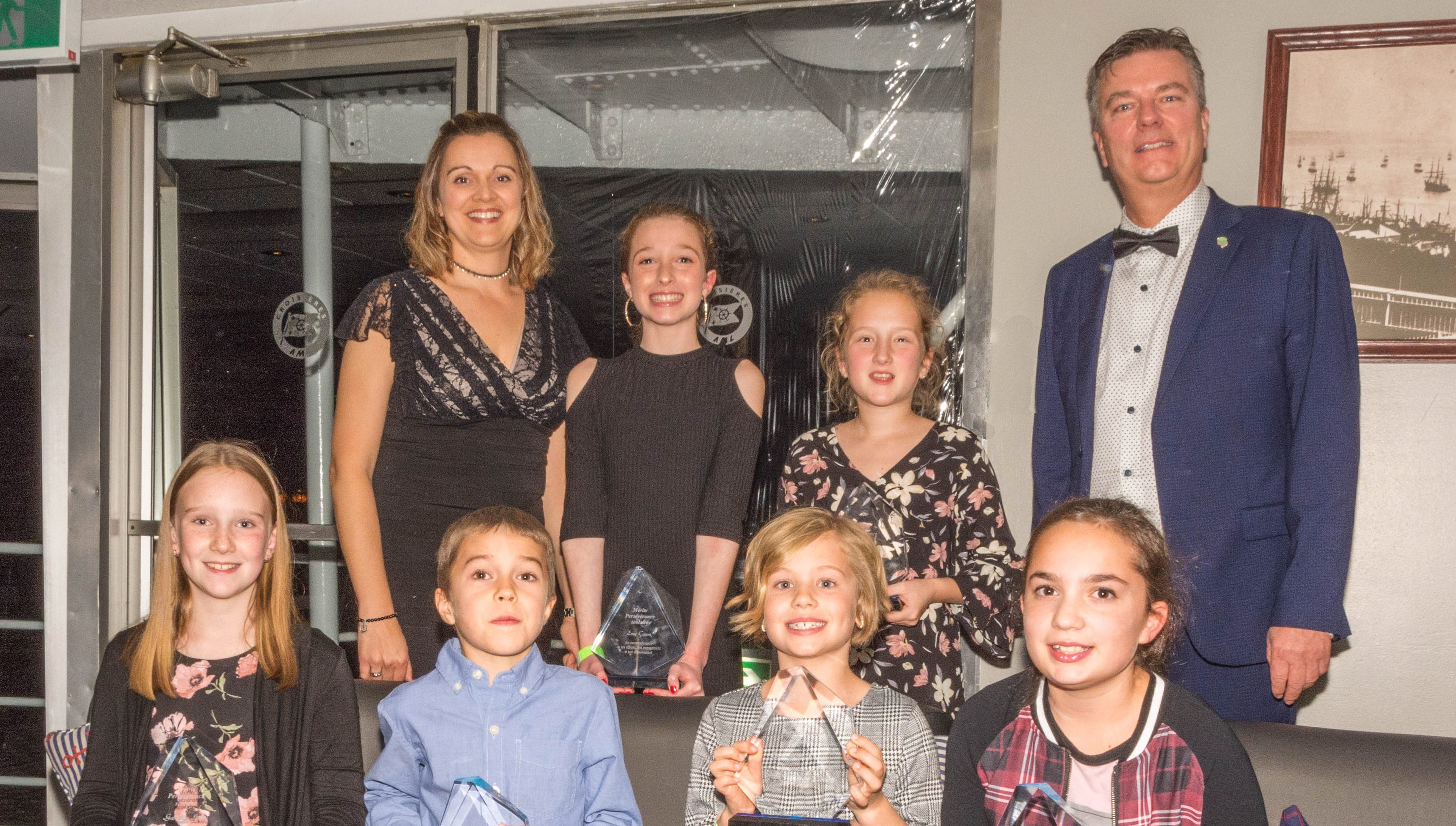 Les lauréats de la persévérance scolaire, Emmanuelle Paquet, 1re année, Mathias Émile Pilote, 2e année, Gabrielle Labbé, 3e année, Ève Labbé, 4e année, Audrey Michaud, 5e année et Emy Caron, 6e année, se sont vus récompensés pour leur sens très marqué de l’engagement, leur implication et leur dépassement de soi.