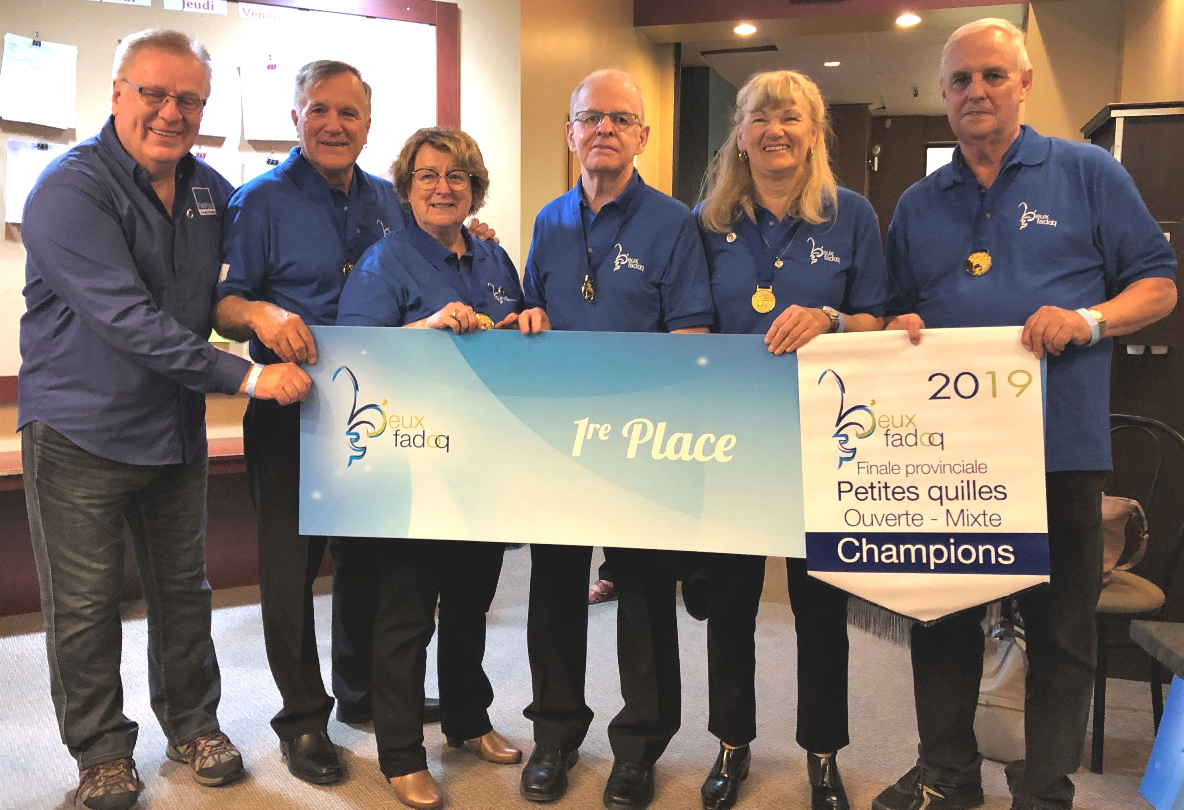 Médaille d’or, Petites Quilles open mixte – Claude Fournier, Annette Martel-Fournier, Réjean Drolet, Francine Fournier et Jacques Plamondon.