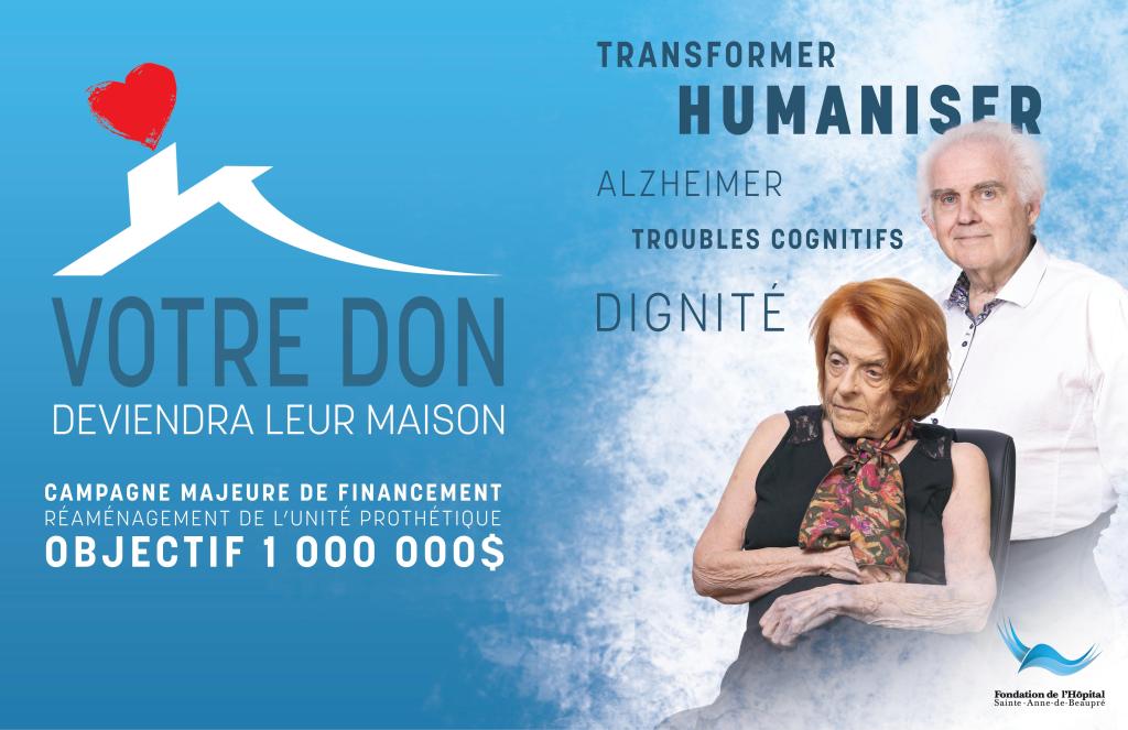 Mémoire. Ayant déjà récolté 677 875$ en décembre dernier, la Fondation de l’Hôpital Sainte-Anne-de-Beaupré entame maintenant une campagne de financement publique pour son projet de réaménagement de l’unité prothétique, dont l’objectif financier global est d’un million de dollars. Le projet touchera une unité du CHSLD de l’Hôpital qui accueille des résidents avec des troubles importants de la mémoire. Bien plus que de simples rénovations, ce projet servira également à humaniser et à transformer complètement l’approche des soins qui y sont offerts.