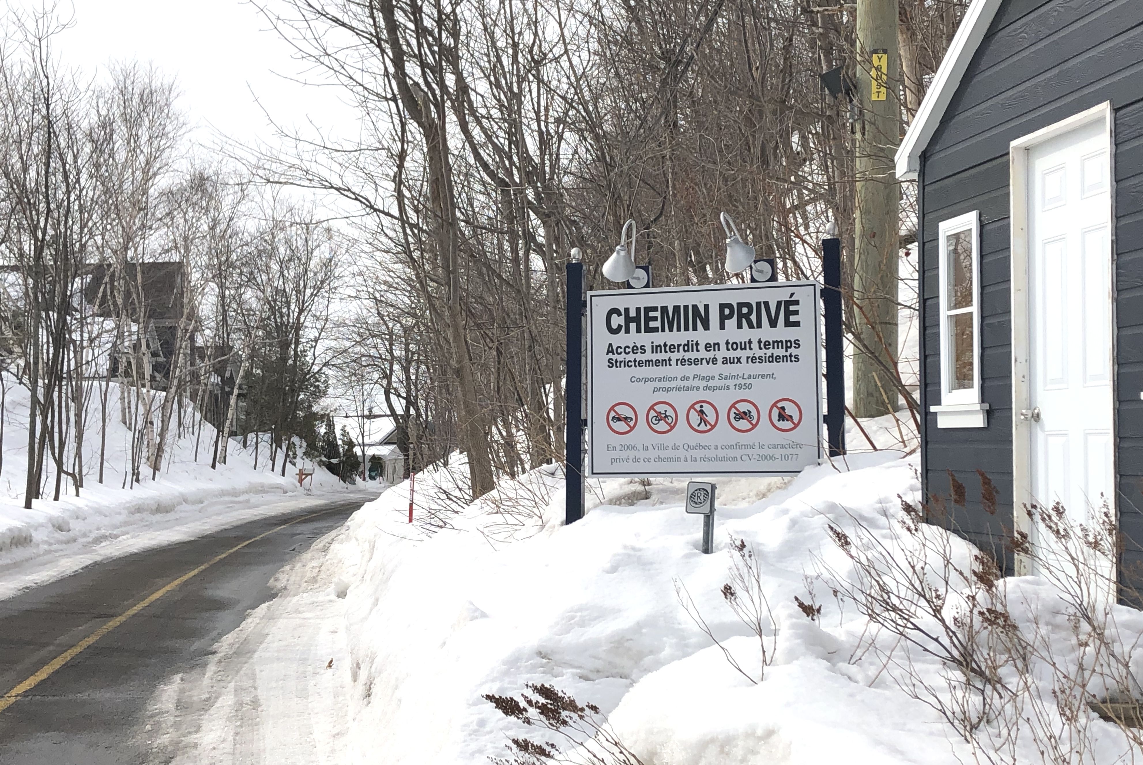 À Québec, la portion du chemin de la Plage Saint-Laurent n’est pas déneigée. Toutefois, par règlement, tous les chemins privés ne sont pas dégagés aux frais de la Ville.