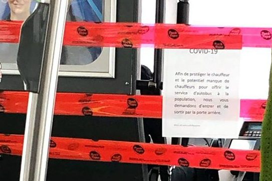 Le gouvernement du Québec a fourni aujourd’hui de nouvelles orientations en matière de prévention. Ces nouvelles mesures ont été convenues de façon concertée avec le syndicat des chauffeurs du RTC. Ainsi, le RTC demande à tous les clients, à l’exception des clients à mobilité réduite, d’entrer par la porte arrière. La rampe sera déployée à l’avant du bus sur les parcours accessibles pour les personnes à mobilité réduite.