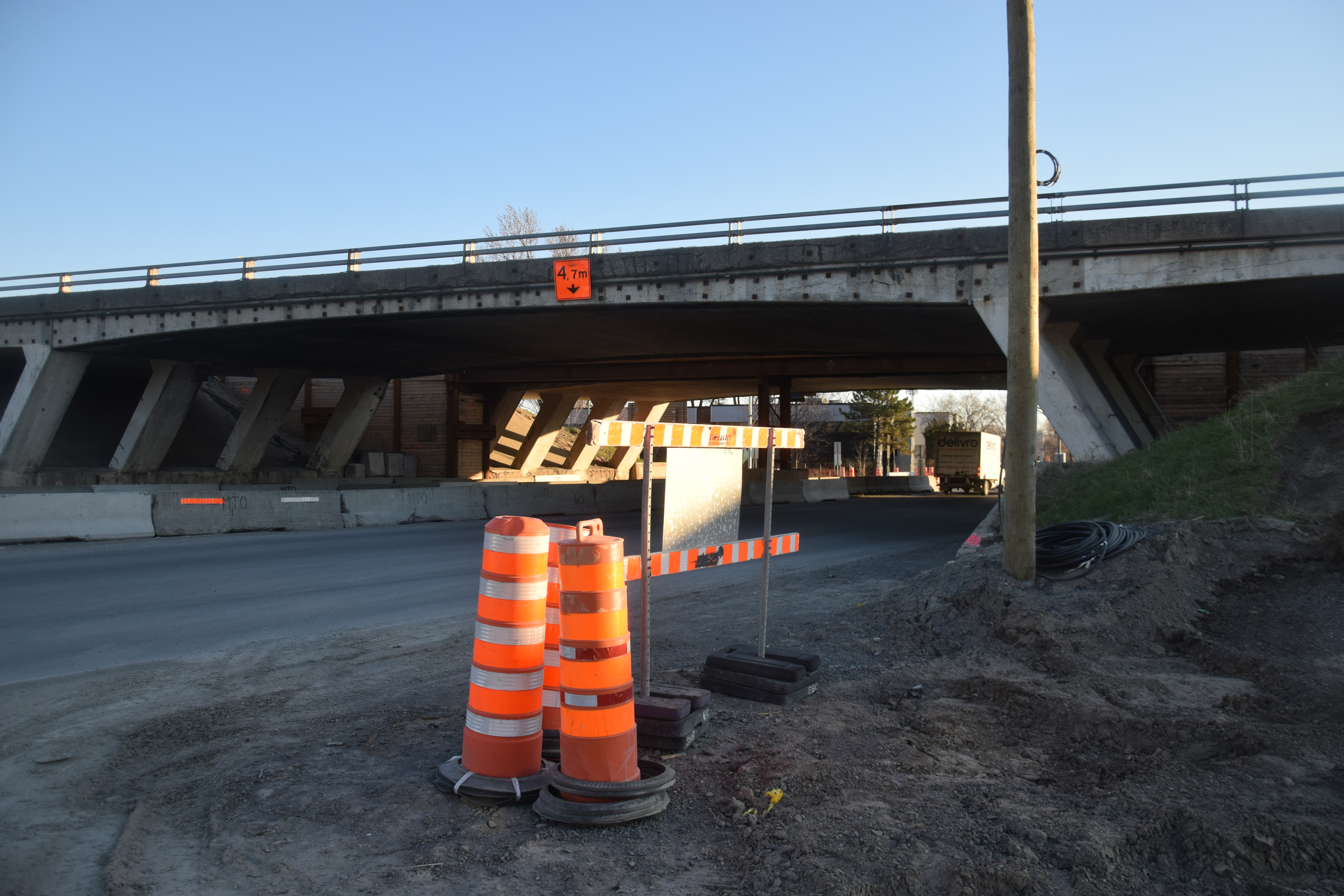 Les travaux de démolition du pont situé au-dessus de la rue Einstein seront réalisés dès le mercredi matin 20 mai au jeudi 21 mai. Ils entraîneront la fermeture de la rue Einstein dans les deux directions, entre la rue John-Molson et la rue Louis-Lumière, du mercredi 5h30 au jeudi 23h59.