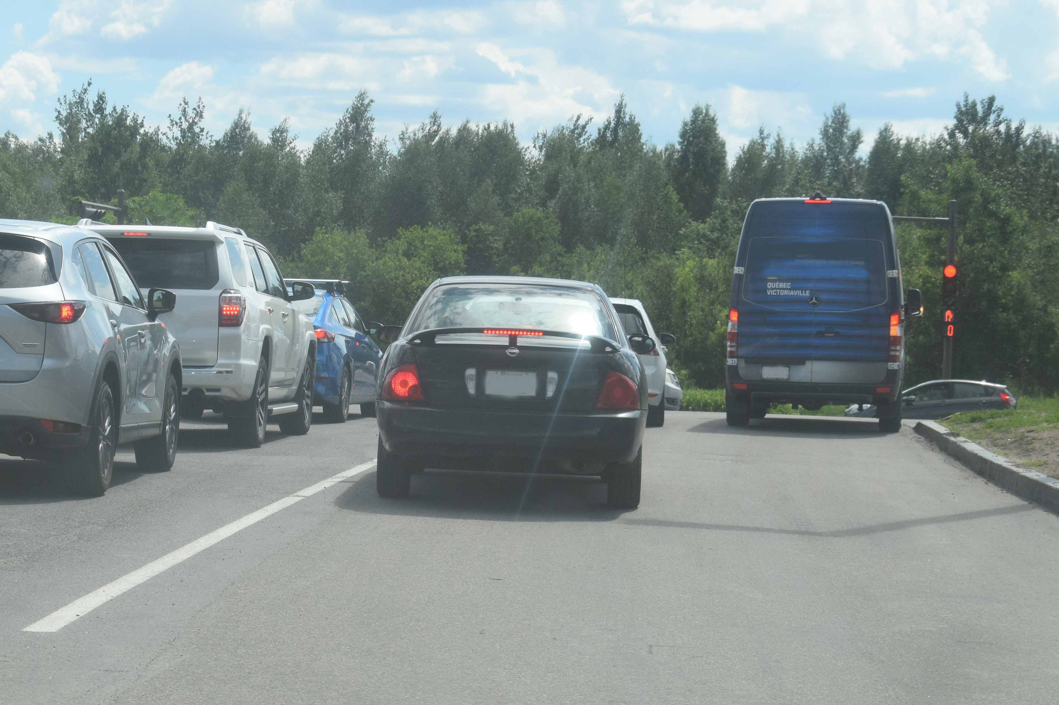 Il semble que la Ville n’ait pas précisé que l’intersection avait été élargie l’an dernier afin de faciliter le virage à droite pour les usages voulant circuler en direction nord et favoriser ceux devant aller tout droit pour rejoindre le boulevard Robert-Bourassa Sud.
