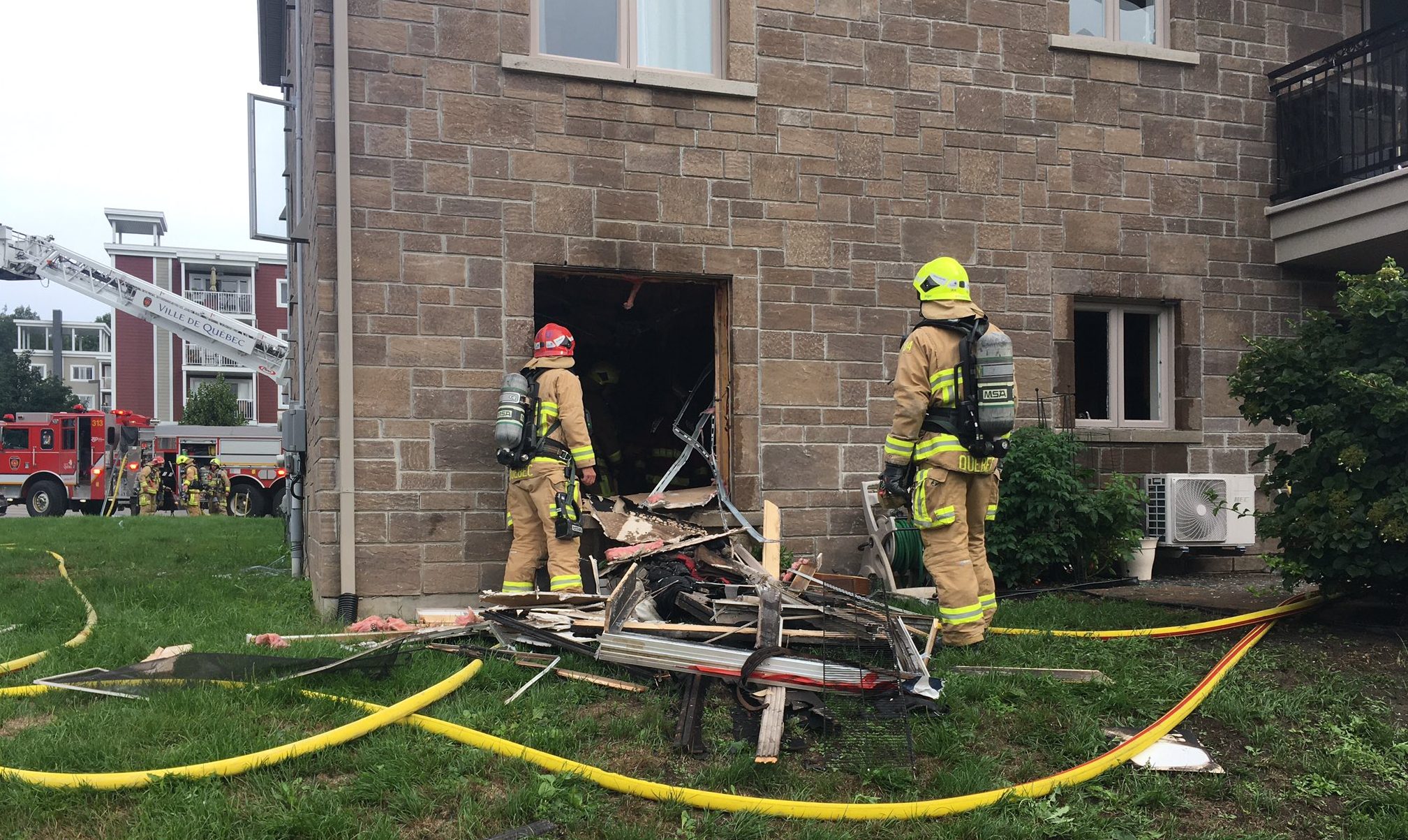 L’officier du premier camion a constaté une légère odeur de fumée à l’extérieur perceptible du stationnement du bâtiment de trois étages dénombrant six logements. Une vérification autour du bâtiment a confirmé la présence d’une fumée opaque dans le logement du numéro civique au 1465 et il a aussitôt demandé une 2e alarme.