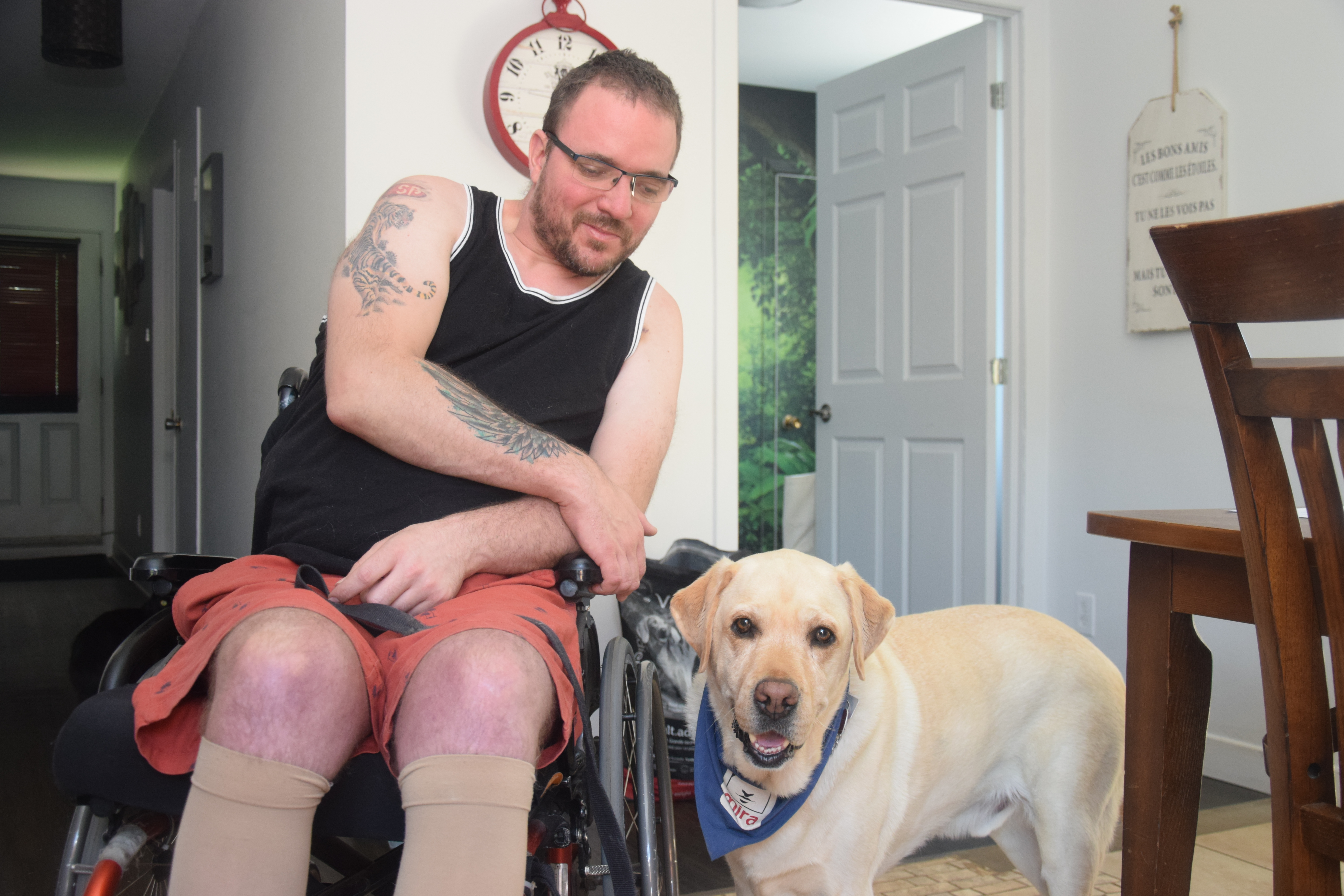 Accompagné de Pico, son chien d’assistance Mira depuis deux ans et demi, il avoue avoir vécu une série de deuils en peu de temps. «J’aimais conduire, je ne conduis plus. Faire une promenade avec ma conjointe, je n’y pense même plus et j’ai perdu l’usage de mes jambes. J’aimais ça aller travailler, voire le monde et sortir.»