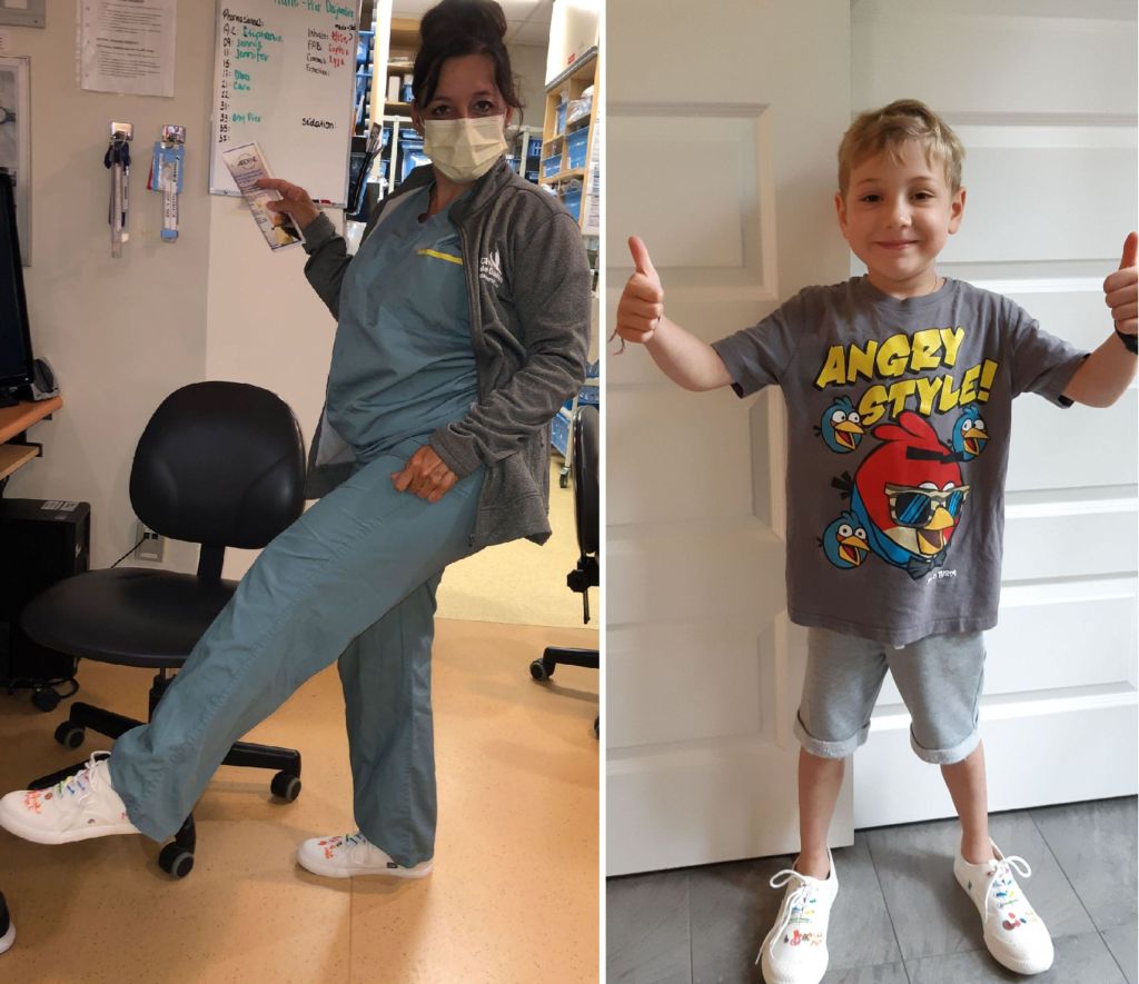 Mathis a profité d’un programme de la Fondation Ardene pour offrir une paire de chaussures supplémentaire à Jennie. Il s’agit de son infirmière à l’unité de soins intensifs du CHU de Québec.