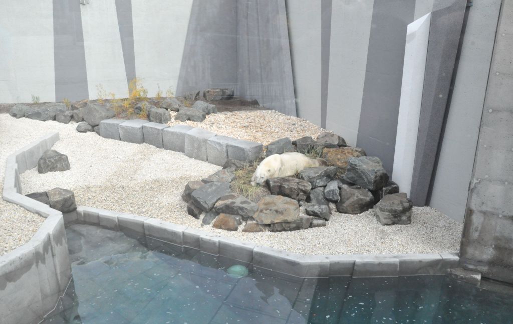 Durant le long chantier de réaménagement, Eddy a été hébergé au Canadian Polar Bear Habitat, à Cochrane en Ontario. «Son séjour s’est très bien passé et son retour aussi. Il reprend sa routine graduellement et se montre très curieux à la découverte des nouvelles installations. On le sent à l’aise et très relaxe», souligne la conservatrice Marie-Pierre Lessard. Elle en veut pour preuve le fait que l’occupant de lieux piquait une petite sieste à proximité du grand bassin lors de la visite médiatique.
