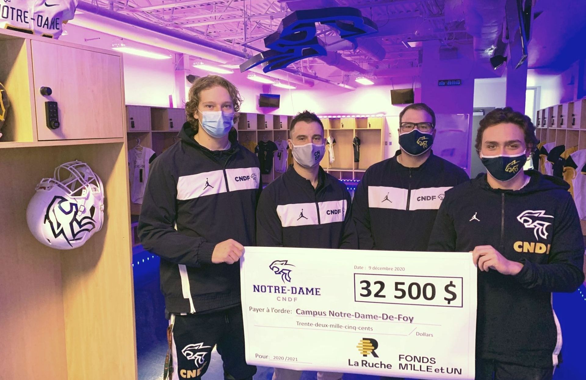SOUTIEN. Une somme globale de 32 500$ a été récoltée sur la plateforme de financement participatif La Ruche, pour la campagne au profit de l’équipe de football du Notre-Dame (CNDF – division 1). L’atteinte de l’objectif initial fixé à 15 000$ en moins de 30 jours a permis de doubler le montant grâce au Fonds mille et un pour la jeunesse.